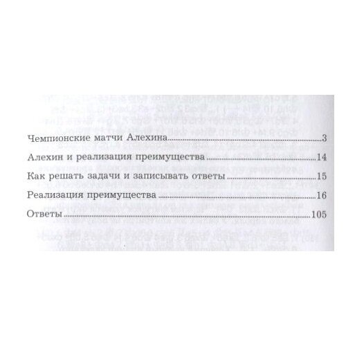 Задачник В. Кострова посвящен теме реализации преимущества. Для выигрыша партии мало получить перевес, требуется его довести для победы. Зачастую этому аспекту в решебниках уделяется недостаточно внимания. Данная книга содержит примеры из партий 4-го чемпиона мира А.А. Алехина. Для решения упражнений придется потрудиться, так как решения представляют собой не одно-двуходовый вариант, а полноценный план реализации перевеса.