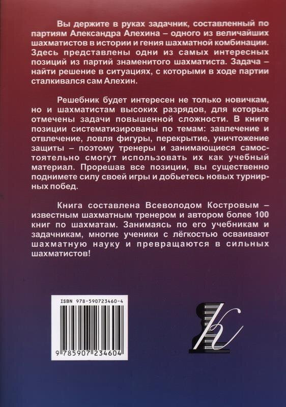 Сервис сравнения цен СкидкаГИД предлагает сравнить цены на товар «Книга: Александр Алехин учит тактике завлечение и отвлечение перекрытие Решебник по партиям чемпиона мира по шахматам (Костров Всеволод Викторович); Издательство Калиниченко, 2022»