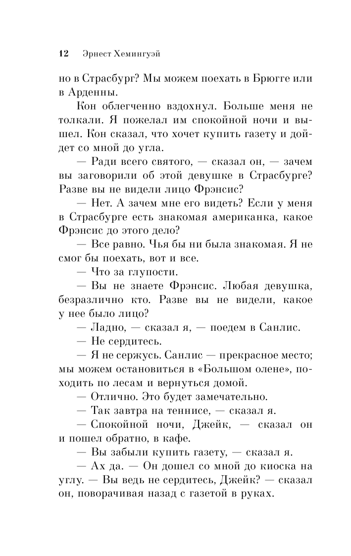 Эрнест Хемингуэй любил развернуть драму внутри- и межличностных отношений на фоне порой расслабляющих, а порой и экстремальных пейзажей… вот, и здесь в, казалось бы, умиротворяющих обстоятельствах неспешного путешествия и легкого досуга рушатся внутренние миры и надежды не только главного героя, но по сути - целого поколения, искалеченного событиями Первой мировой… к обязательному прочтению всем любителям «большой литературы»...