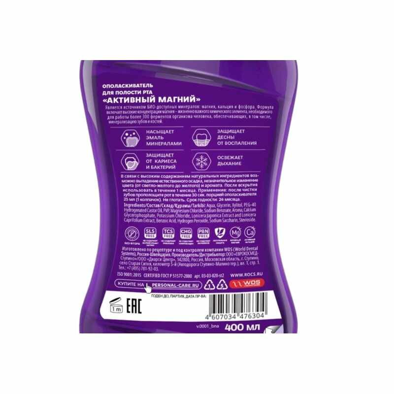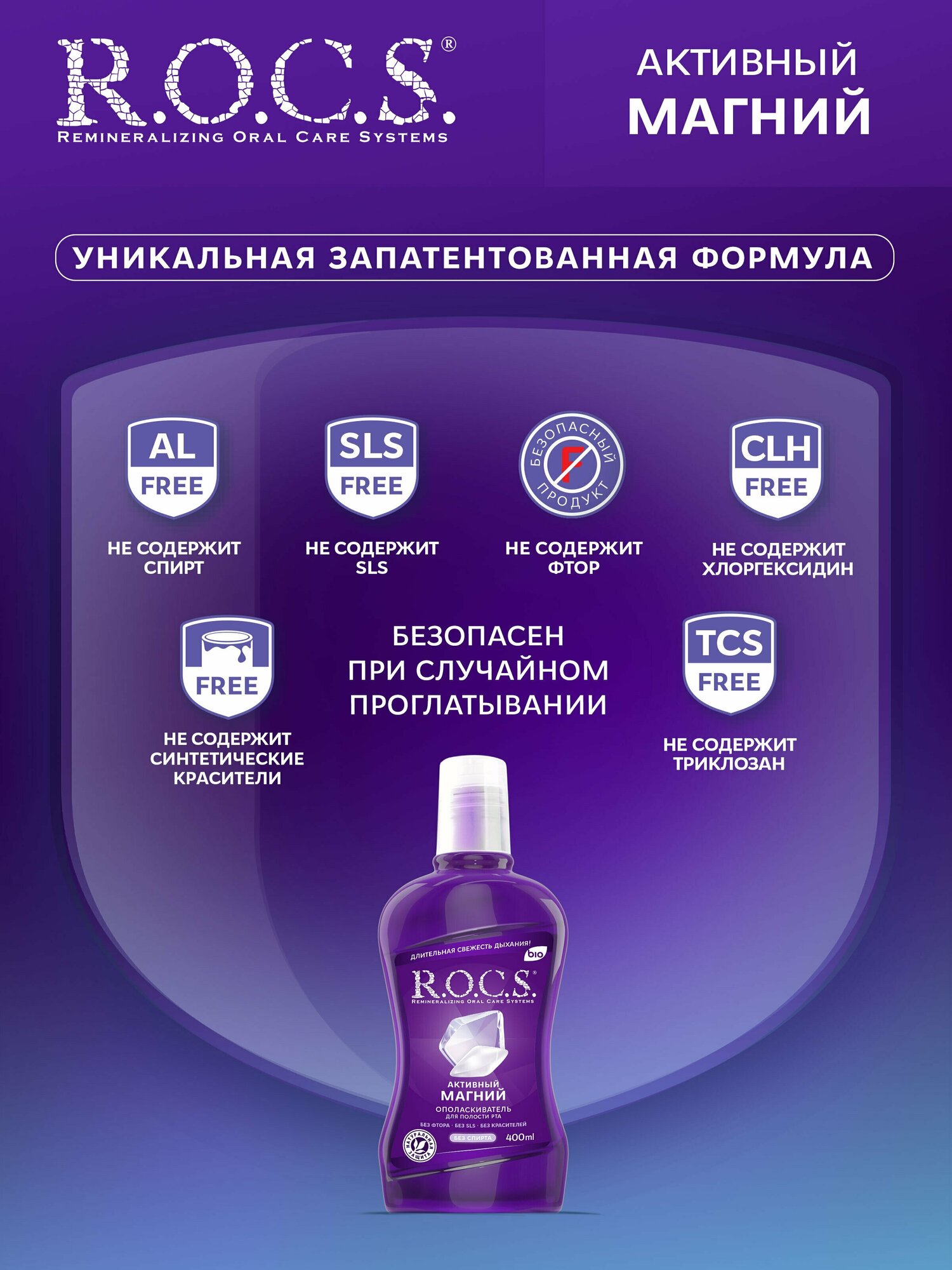 Ополаскиватель для полости рта Активный Магний R.O.C.S./РОКС 400мл ООО ЕВРОКОСМЕД-Ступино (1473126)