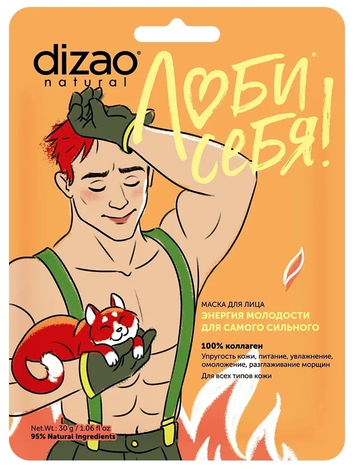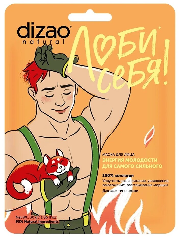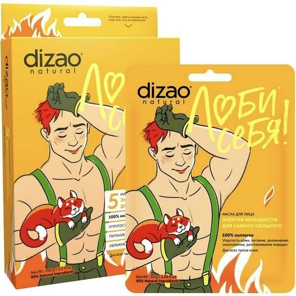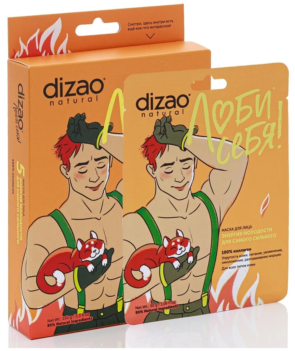 Маска для лица для мужчин энергия молодости коллаген 100% Люби себя Dizao/Дизао 5шт DMASK INC (2093234)