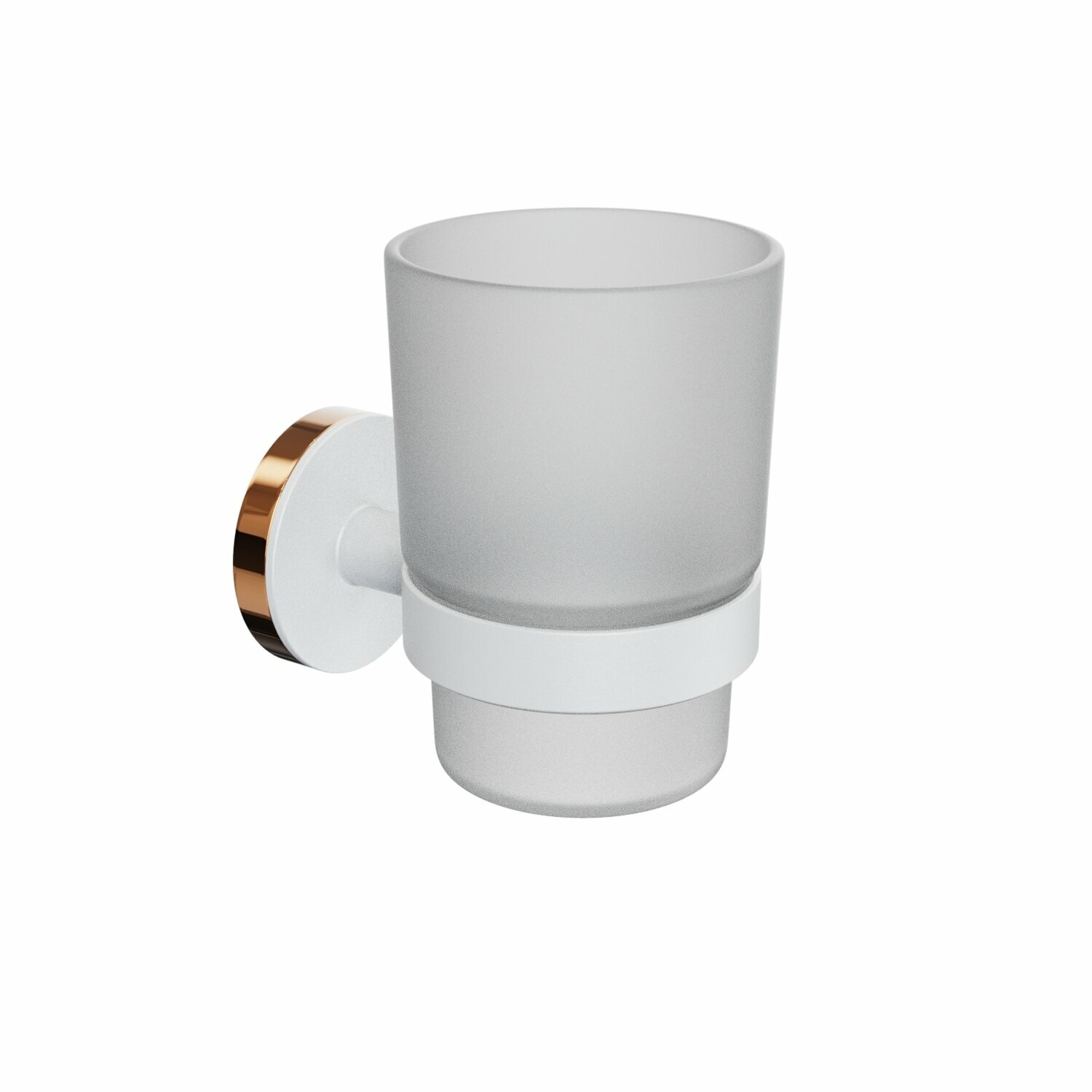 Стакан для хранения гигиенических принадлежностей - это удобный аксессуар, но он занимает много места на полочке в ванной и может упасть при неосторожном движении. Элегантный стакан для зубных щеток серии "LORD" FORA не требует отдельного места и никогда не упадет. Он крепится к стене при помощи прочного держателя с защитным покрытием, которое предотвращает образование коррозии. Стакан выполнен из белого матового стекла, поэтому подходит к любому стилистическому оформлению ванной комнаты. Главное достоинство изделий в коллекции "LORD" FORA - золотые и хромовые декоративные кольца. С их помощью вы сможете украсить держатель и подчеркнуть изысканность интерьера. Обратите внимание на всю серию "LORD" FORA исполненную в 3 - х разных цветовыхрешениях: черный, белый и хромовый.