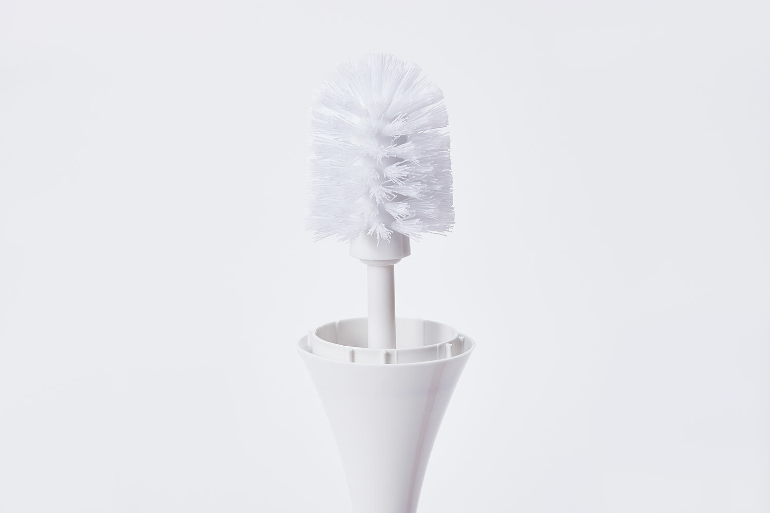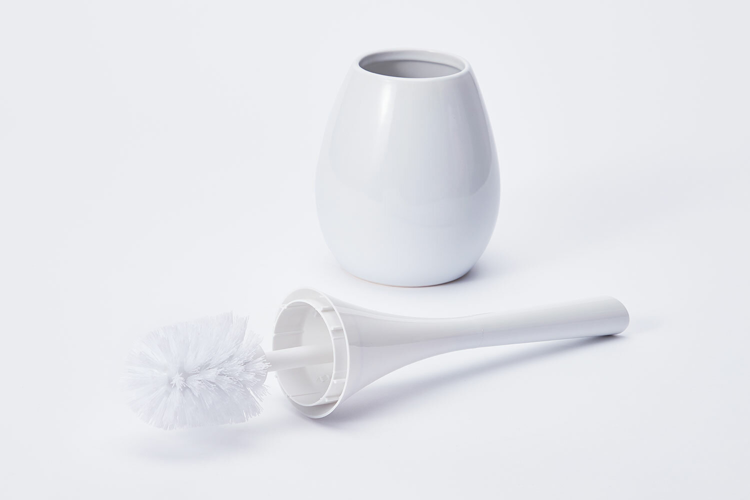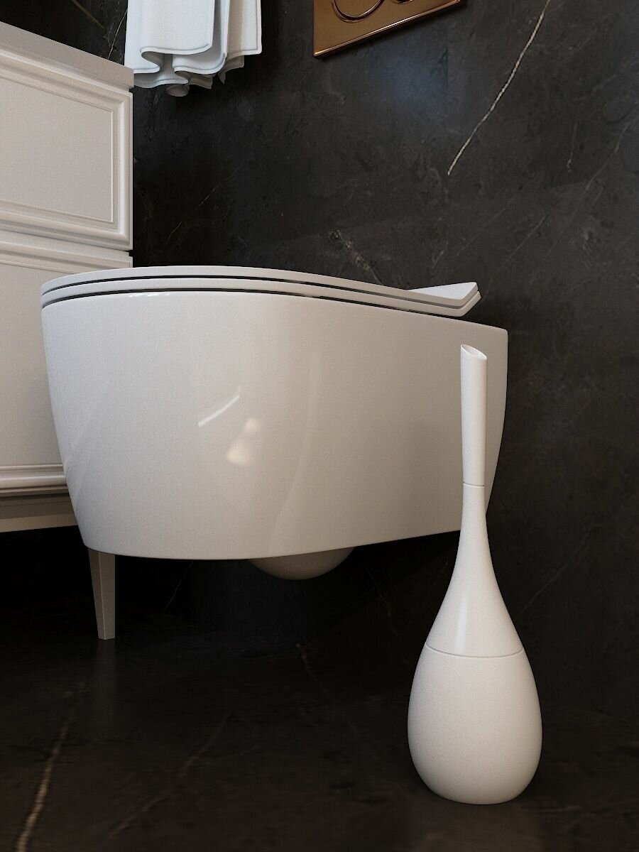 Туалетный ерш не случайно получил название Alien – «инопланетянин»: с первого взгляда трудно догадаться, что это не декоративный объект, а вполне функциональное приспособление. Пластиковая ручка щетки выглядит как продолжение колбы-подставки, выполненной из керамики и покрытой белой глянцевой глазурью. Щетина изготовлена из прочного полимерного волокна, устойчивого к истиранию и средствам бытовой химии. Все элементы изделия имеют гладкую поверхность, что улучшает их гигиенические свойства.