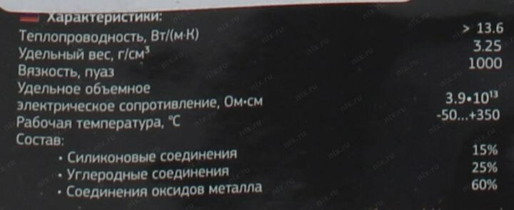 | Удельный вес термопасты | 3.25 г/см³ |