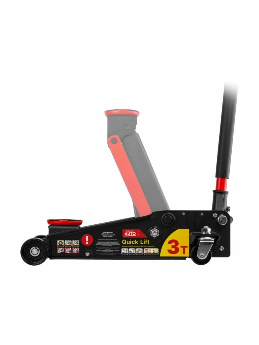 Профессиональный домкрат гидравлический подкатной с ручным приводом, предназначенный для поднятия грузов на высоту. Отличается простотой обслуживания и надежностью в эксплуатации, позволяет при небольшом рабочем усилии осуществлять плавный подъем груза и его точную фиксацию на заданной высоте. Модель оснащена двухштоковым механизмом быстрого подъема (Quick Lift) для поднятия опорной площадки на максимальную высоту за 7 полных качков рукоятью. Подходит для использования на станциях техобслуживания и шиномонтажа.