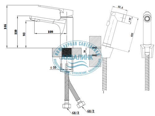 | Оснащение | аэратор, гибкая подводка, крепления, душевой шланг, лейка гигиенического душа, настенный держатель |