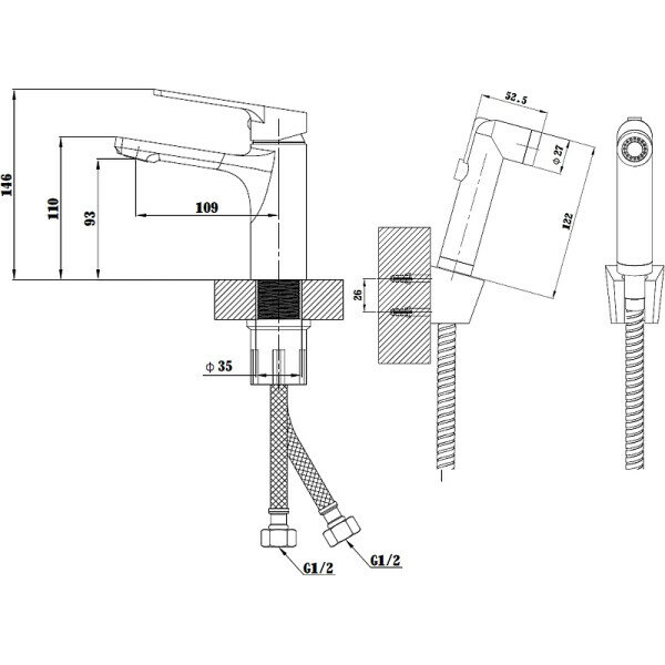 - Подводка: гибкая, G1/2.