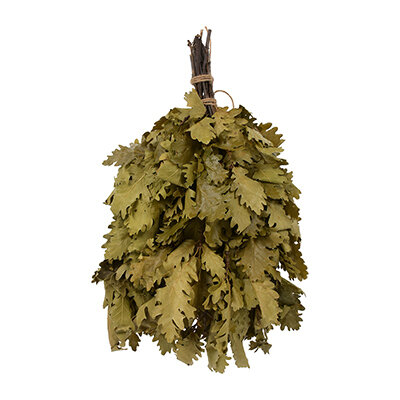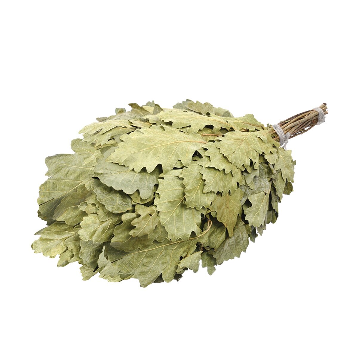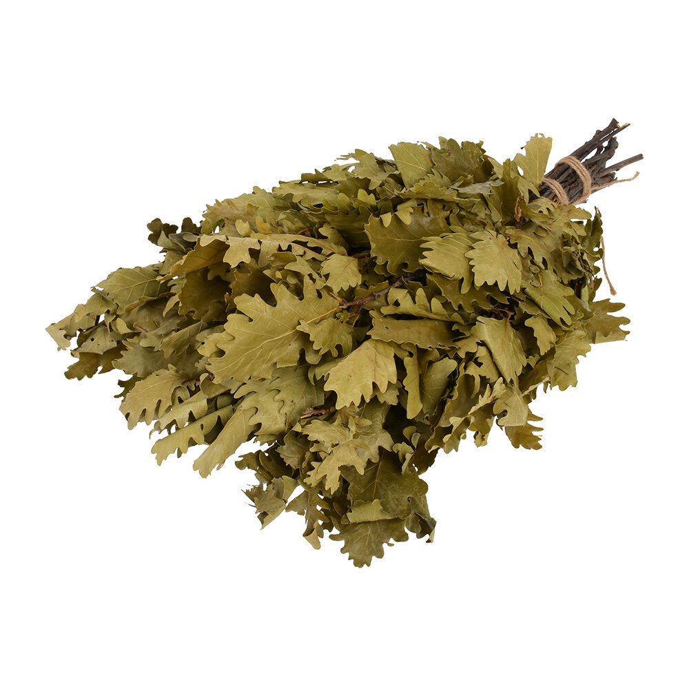 Свежий дубовый веник для бани собран и подготовлен для хранения по всем правилам заготовки веников. Листья держатся долго.