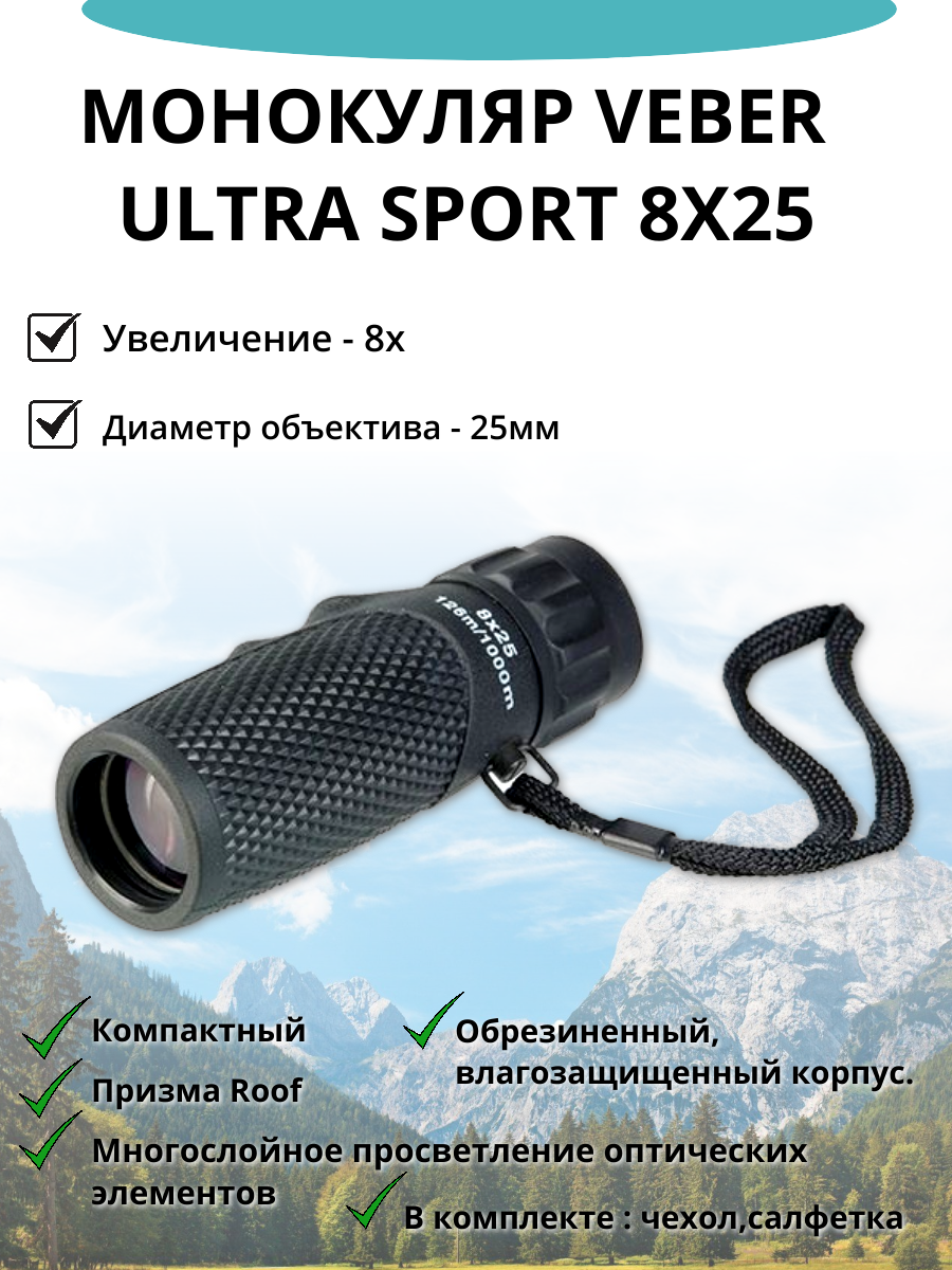 Монокуляр Veber Ultra Sport 8x25 черный (П118-68598)