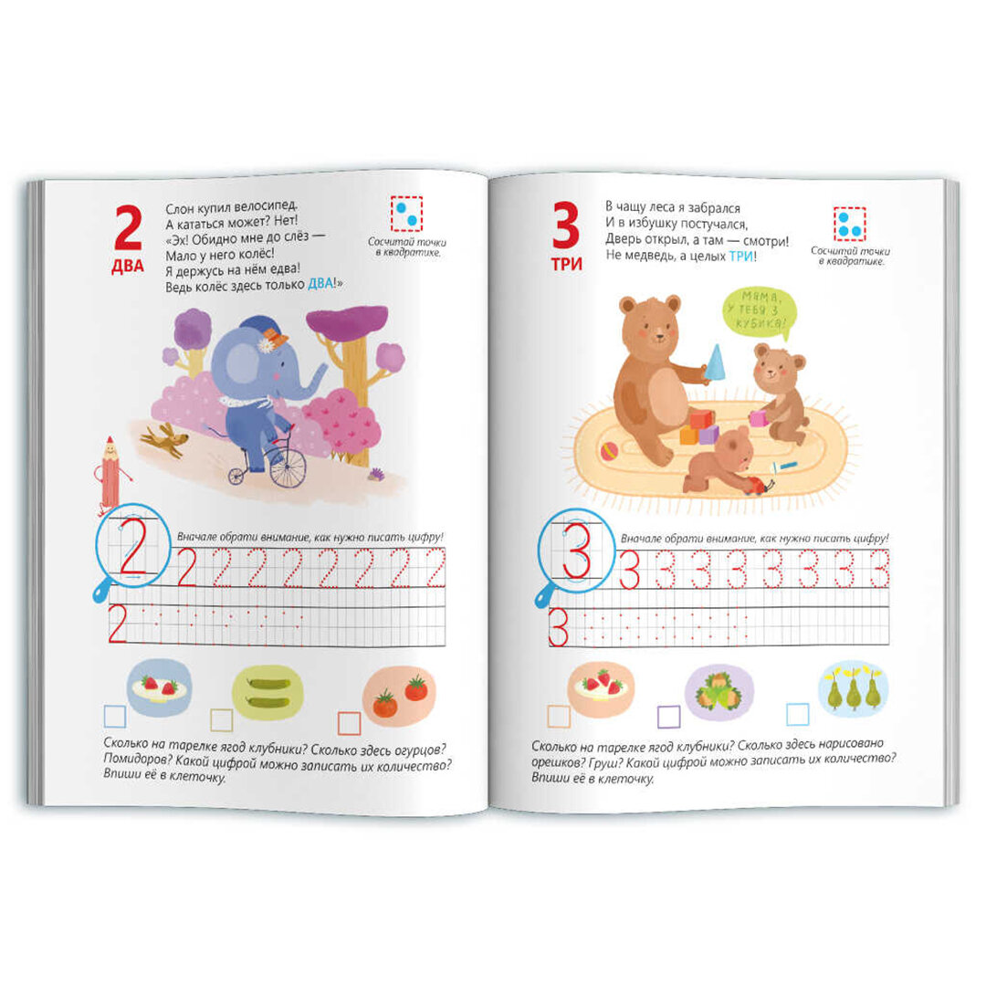 С тетрадями этой серии ребёнок без труда выучит алфавит, научится писать печатные буквы, читать по слогам, выучит цифры, будет считать от 1 до 1 О и обратно, сравнивать, складывать и вычитать. Красочные иллюстрации помогут легко запомнить материал, а забавные стихи обеспечат прекрасное настроение и превратят занятия в весёлую игру.