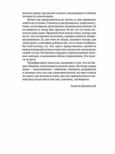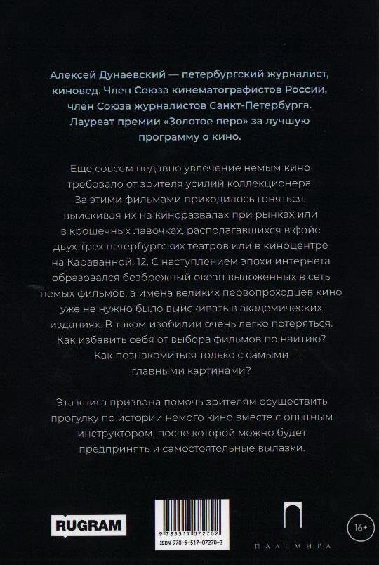 Эта книга призвана помочь зрителям осуществить прогулку по истории немого кино вместе с опытным инструктором, после которой можно будет предпринять и самостоятельные вылазки.