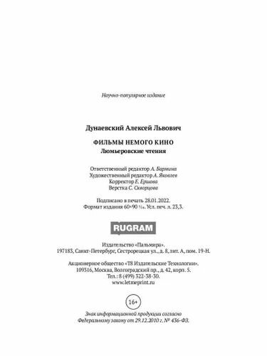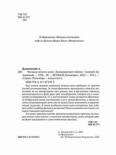 На сегодняшний день товар «Книга: Фильмы немого кино. Люмьеровские чтения (Дунаевский Алексей Львович); Пальмира, 2022» можно купить с кешбеком в 1 магазине: book24