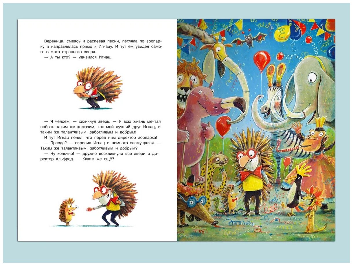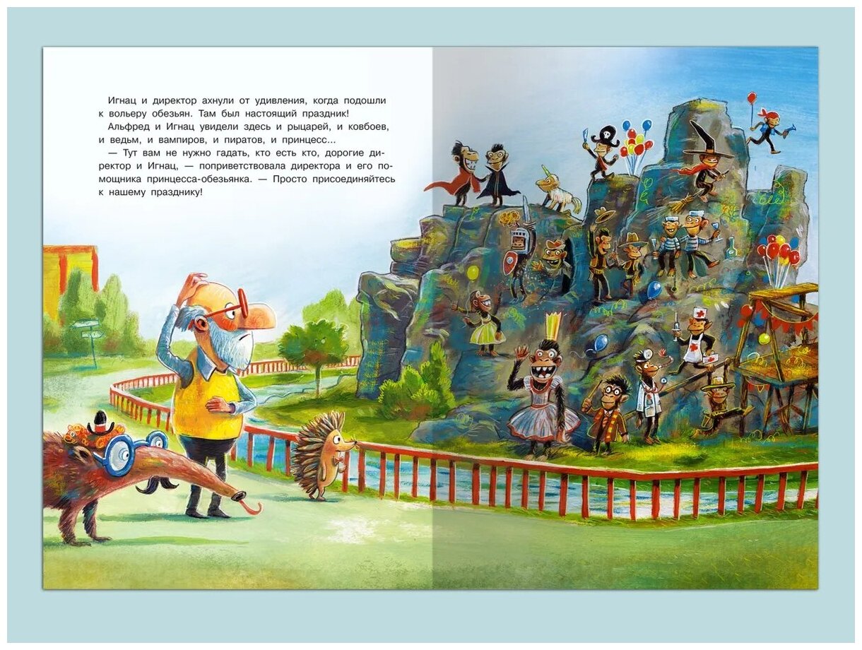Сегодня в зоопарке карнавал. Львы, слоны, бегемоты, обезьянки, сурикаты, зебры – все решили переодеться в животных, которыми всегда мечтали побывать. Но как же теперь понять, кто есть кто? Помощнику директора зоопарка ежу Игнацу нужно поскорее навести порядок, ведь зоопарк вот-вот откроет двери для посетителей! Книга увеличенного формата не только порадует Вашего малыша знакомством с обаятельными героями, но и яркими, детальными иллюстрациями. Издание станет хорошим подарком для детей дошкольного и младшего школьного возраста, заполнит досуг интересным и полезным занятием в поездке, в детском саду и дома.