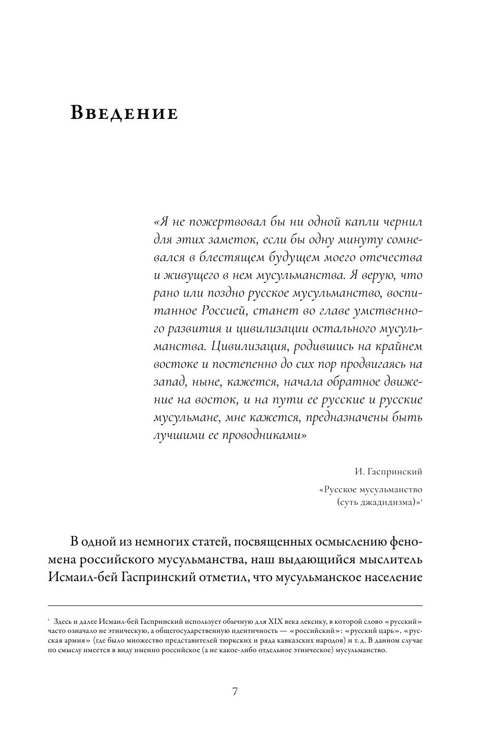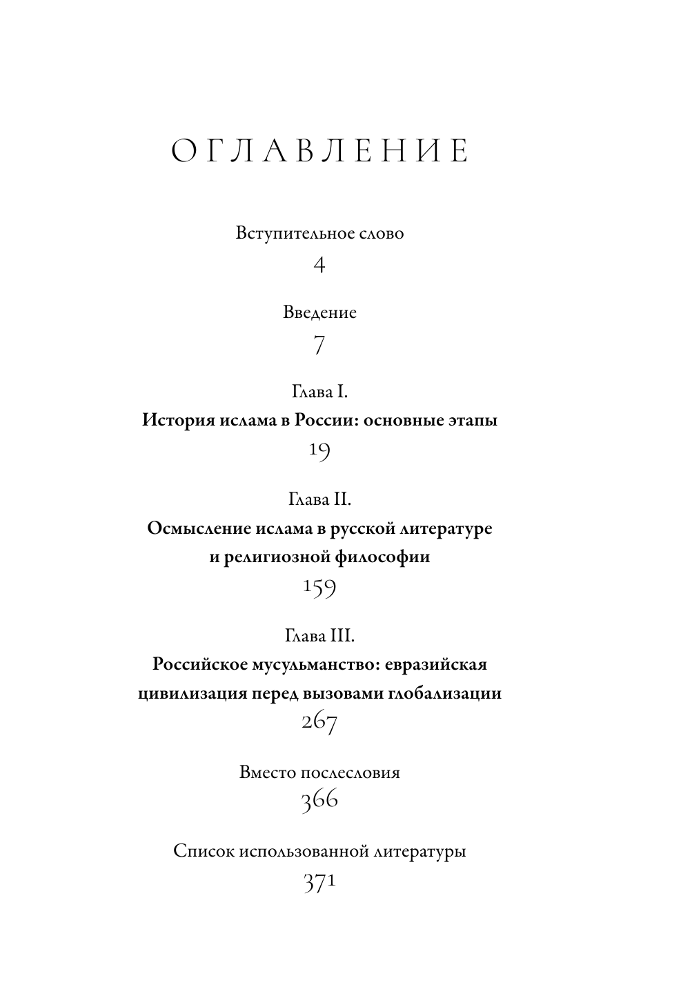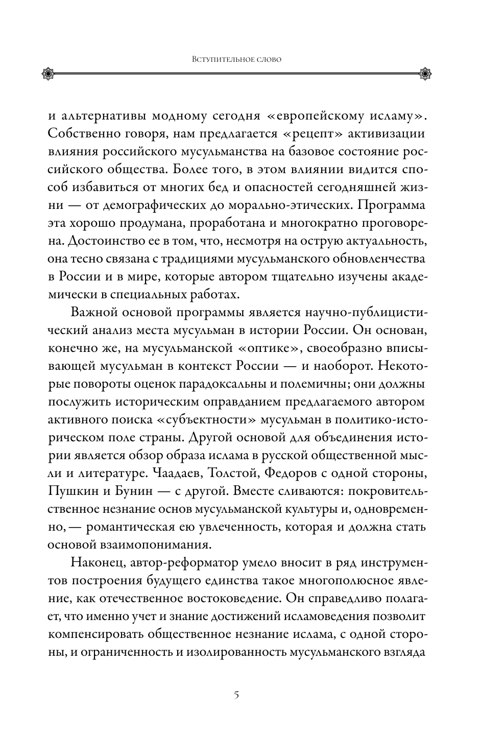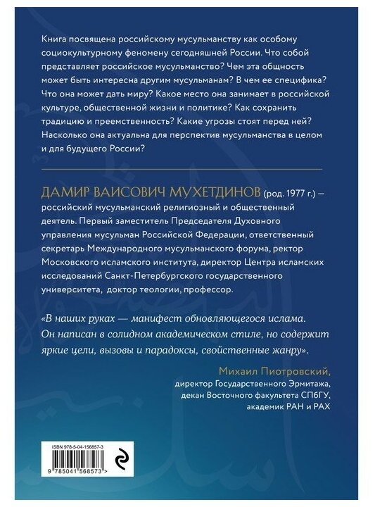 Книга посвящена российскому мусульманству как особому социокультурному феномену сегодняшней России. Что собой представляет российское мусульманство? Чем эта общность может быть интересна другим мусульманам? В чем ее специфика? Что она может дать миру? Какое место она занимает в российской культуре, общественной жизни и политике? Как сохранить традицию и преемственность? Какие угрозы стоят перед ней? Насколько она актуальна для перспектив мусульманства в целом и для будущего России?