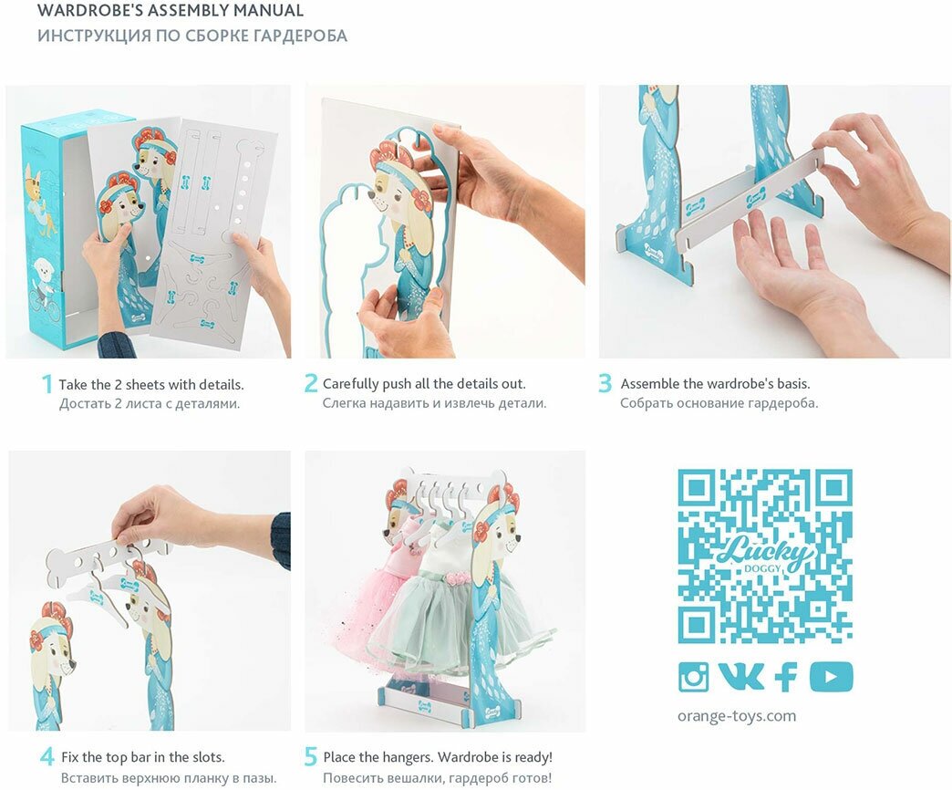 - У каждой игрушки из коллекции Lucky Doggy шея на шарнире и есть магнитики в лапках, благодаря которым они могут принимать разные позы. Все они упакованы в подарочную бирюзовую коробочку, которая превращается в гардероб с вешалками. И поскольку вся одежда легко снимается и их можно переодевать такой шкафчик будет как раз кстати.