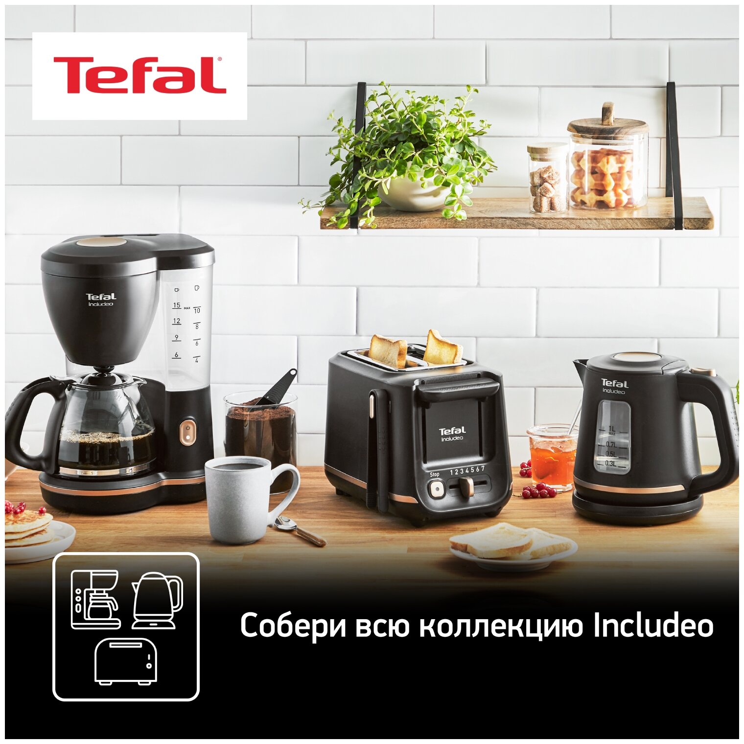 Удобный в использовании чайник для ежедневного использования. Линейка Tefal Includeo разработана нашими дизайнерами совместно с покупателями, благодаря чему она удовлетворит потребности каждого. Электрический чайник с эргономичным и удобным дизайном оснащен простыми и полезными функциями: легкое открытие крышки нажатием большой кнопки, кнопка включения/выключения с подсветкой, два больших индикатора уровня воды в литрах или чашках, а также основанием с поворотом на 360 градусов для удобного размещения. Основание чайника вращается на 360 градусов, обеспечивая легкое и удобное перемещение под любым углом, а также имеет контрастное цветовое кольцо – для более легкого размещения. Идеально подходит для приятного и легкого ежедневного использования. Вместимость 1 л и небольшой вес обеспечивают удобное и легкое использование. Крышка открывается автоматически простым нажатием большой кнопки. Два больших индикатора уровня воды с обеих сторон с большими, четкими и хорошо читаемыми отметками в литрах или чашках. Фильтр от накипи легко снимается и гарантирует чистоту воды и простоту очистки. Эргономичный дизайн широкой ручки обеспечивает удобное и безопасное использование чайника. Более практичные, удобные и эргономичные устройства Includeo тестируются в реальных условиях. Хорошо продуманный дизайн чайника гарантирует легкое использование каждому!