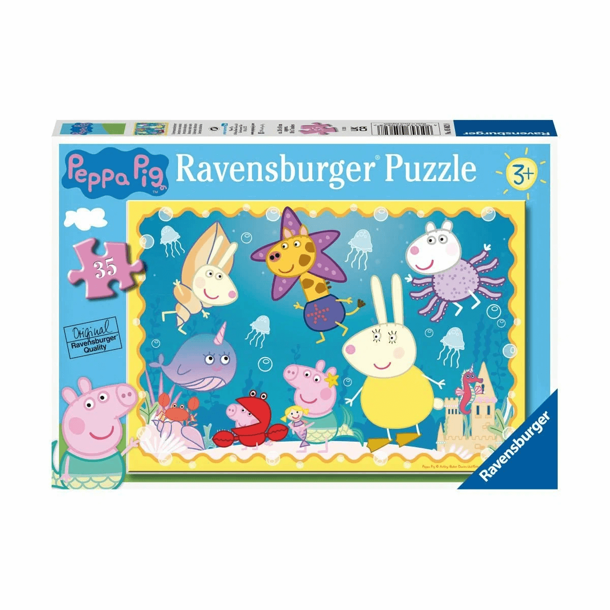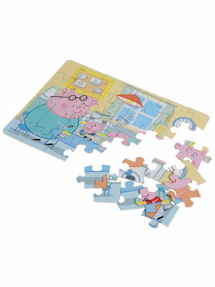Ravensburger Пазл гигантский Свинка Пеппа (35 элементов) Пазл Ravensburger «Свинка Пеппа» — это яркий пазл из 35 элементов с изображением любимых героев мультфильма. Пазлы Ravensburger отличаются высоким качеством полиграфии, изготовлены из экологичного сырья. Для производства пазлов используются материалы высшего качества: особенный толстый картон комбинируется с тонким верхним слоем бумаги с льняной структурой, что позволяет добиться ярких имиджей пазлов с отсутствием бликов на поверхности. Благодаря изготавливаемым вручную режущим инструментам обеспечивается идеальное сцепление элементов и уникальность вырубки каждого элемента. Пазл пригоден для многократного использования, так как при правильной эксплуатации плотный высококачественный картон не расслаивается. Сборка пазлов — отличный способ медитации и отдыха для детей и для взрослых. Подходит для детей от 3 лет.