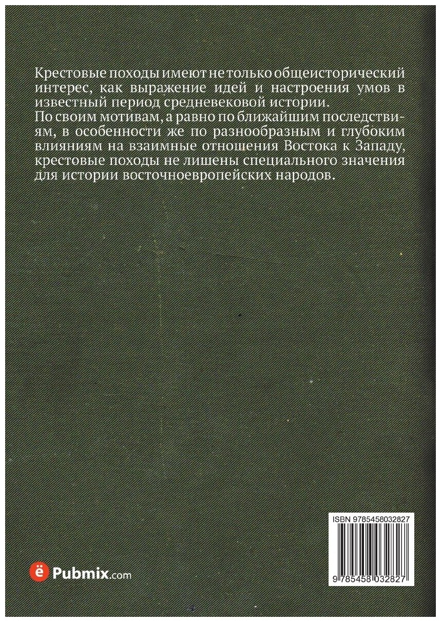 По своим мотивам, а равно по ближайшим последствиям, в особенности же по разнообразным и глубоким влияниям на взаимные отношения Востока к Западу, крестовые походы не лишены специального значения для истории восточноевропейских народов.