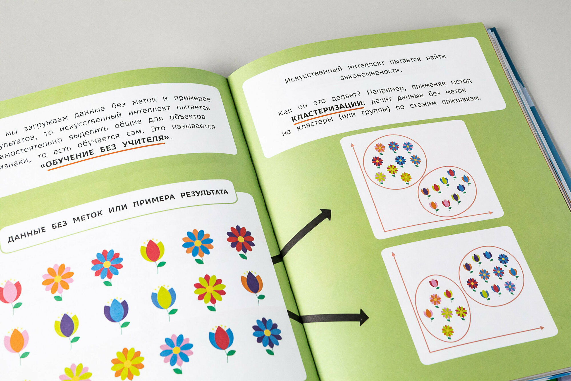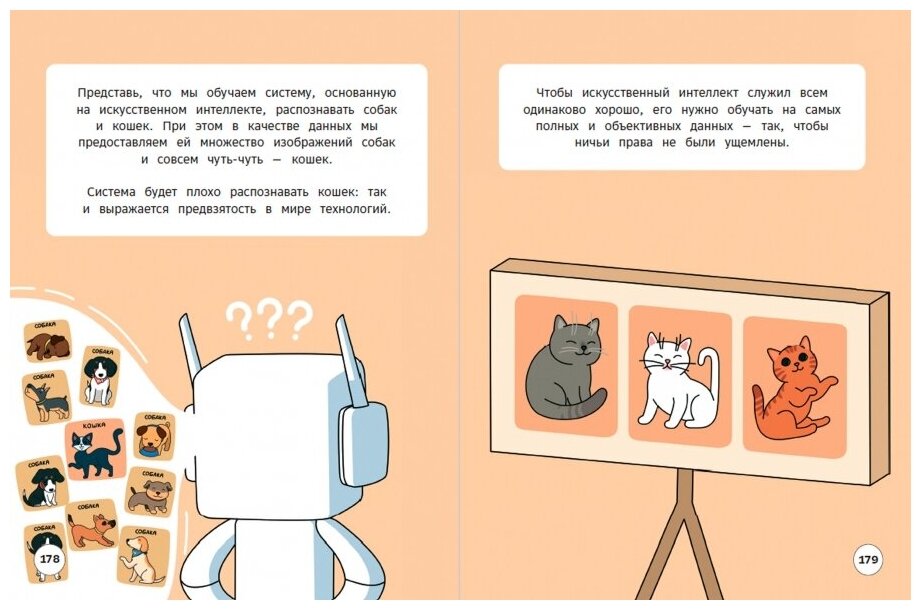 Великолепно иллюстрированная, книга познакомит ребенка с основами машинного обучения и работы с данными, пробудит интерес к технологиям, заставит задуматься об их будущем и покажет, что искусственный интеллект — это не только перспективно, но и очень увлекательно.