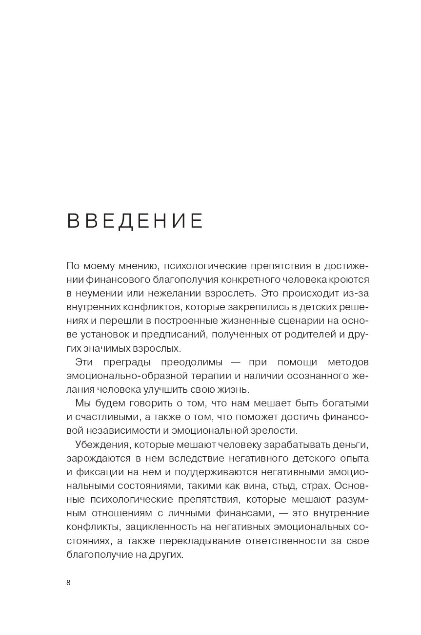 Почему одни много зарабатывают и живут счастливо, а другие нет? И что нужно сделать, чтобы стать счастливым и обеспеченным? Автор книги Ирина Марьевич знает ответ на эти вопросы: нужно повзрослеть. Но сначала избавиться от негативного опыта, убеждений и установок, которые многие из нас получили в детстве. Кто умеет искренне, по-настоящему мечтать? Дети дошкольного возраста. Кто может подарить безусловную любовь и принятие? Поддерживающие родители. Кто способен направлять, принимать верные решения и отвечать за свои поступки? Взрослые самостоятельные люди. Только выстроив гармоничные отношения между этими сторонами своей личности - Ребенком, Родителем и Взрослым, - вы обретете свободу и финансовое благополучие. А поможет вам в этом книга Ирины Марьевич, основанная на практическом опыте автора и на историях реальных людей. Эта книга станет вашим личным психологом.