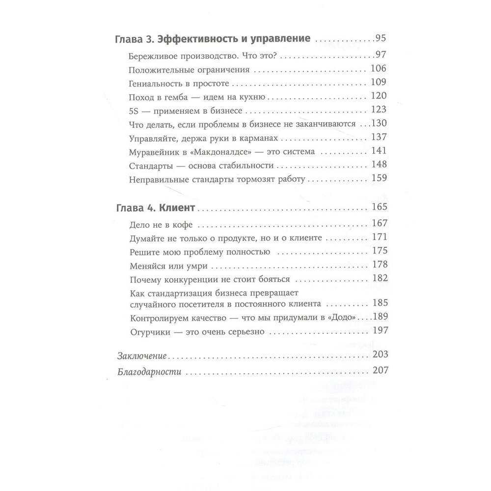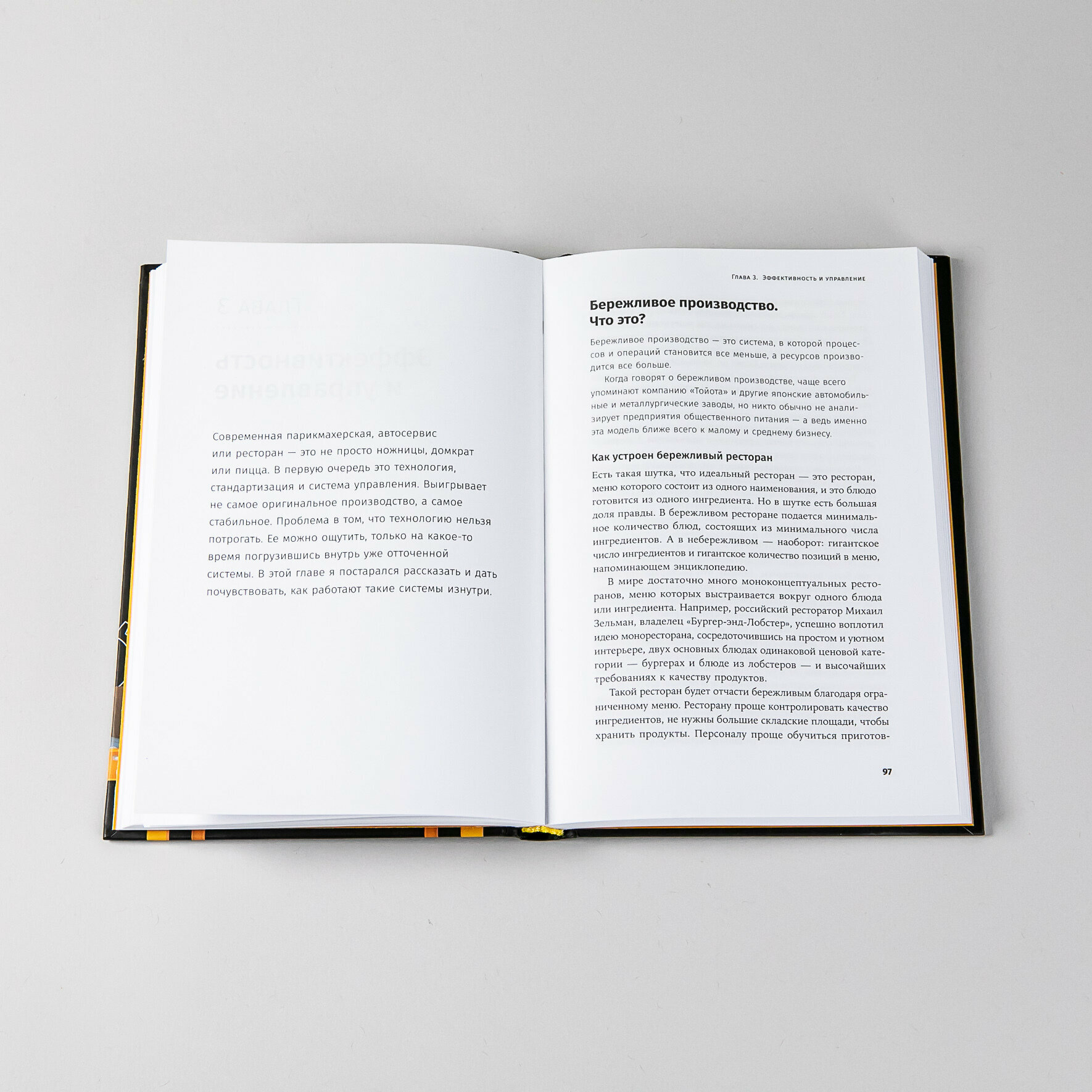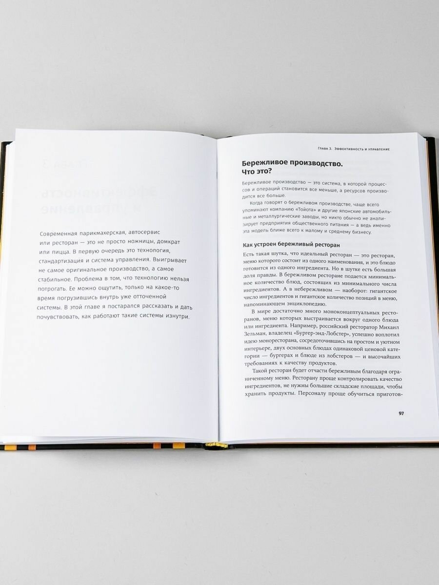 Книга очень легко написана, нет лишней воды, много примеров которые можно и стоит применять не только в сфере общепита, но и в любой деятельности, как минимум техники управления, подходы к обучению персонала, подходы к системе качества работ/услуг. Книга достойна чтобы ее иметь у себя в библиотеке.