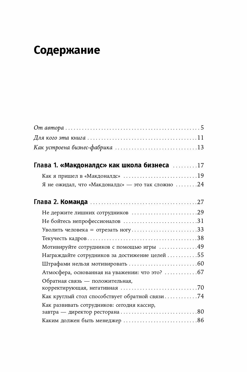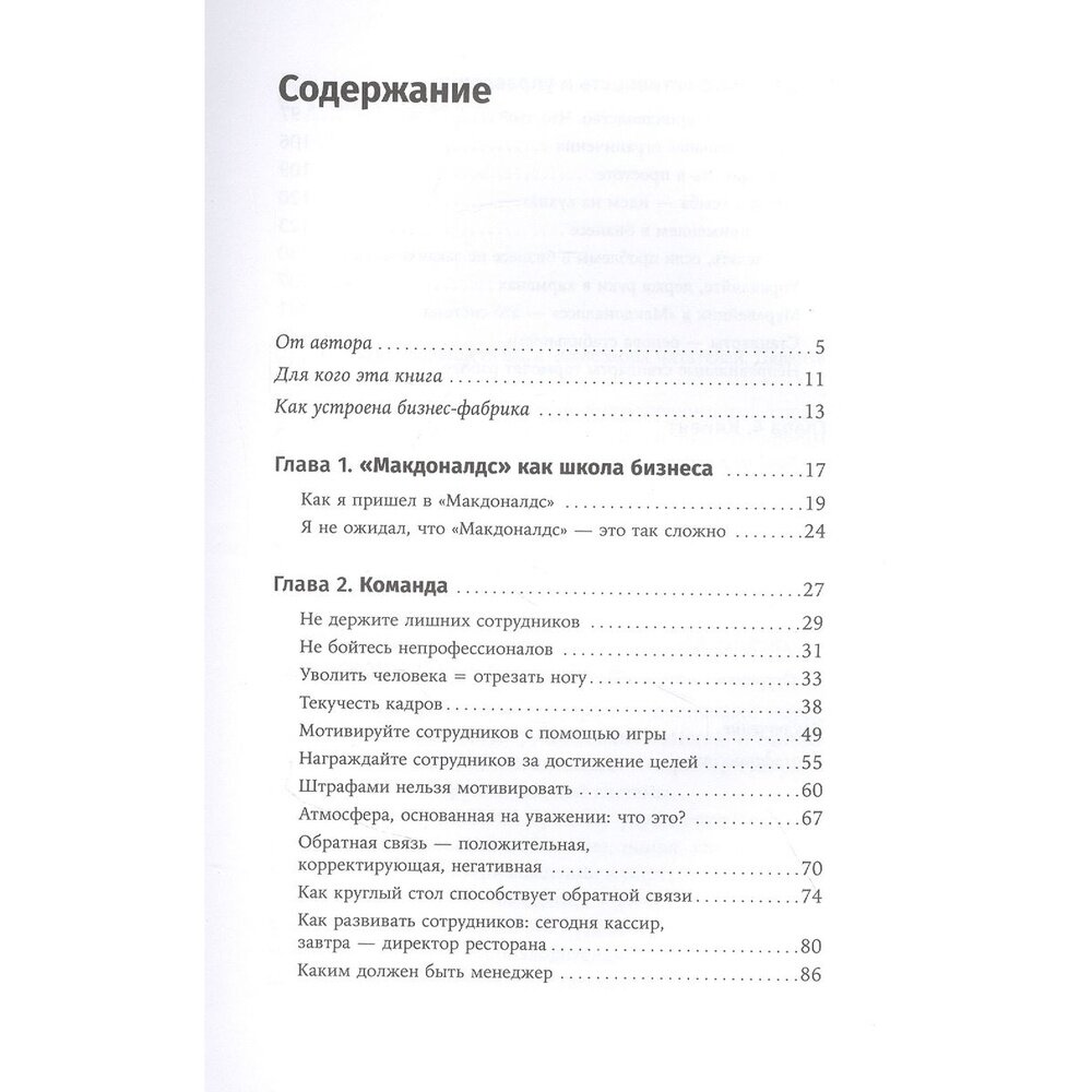 «Макдоналдс» — отличная школа менеджмента, продуманные и выстроенные до мелочей производственные процессы. Благодаря четким стандартам компания добивается их идеальной синхронизации. Можно ли перенести этот опыт и практики в свою компанию и создать бизнес-фабрику в стиле «Макдоналдс»?Опираясь на многолетний управленческий опыт работы в «Макдоналдс», «Додо Пицце», «Вилгуд», предприниматель Марсель Зиганшин утверждает: в какой бы сфере вы ни работали, свой «Макдоналдс» можно построить везде.?Книга состоит из трех основных частей: «Команда», «Эффективность и управление» и «Клиент». Именно эти три составляющие необходимо держать под контролем, чтобы бизнес работал без сбоев, как слаженный механизм, и автор подробно на примерах из практики рассказывает, как это сделать. Книга будет полезна как предпринимателям, так и любому менеджеру, работающему над оптимизацией процессов.