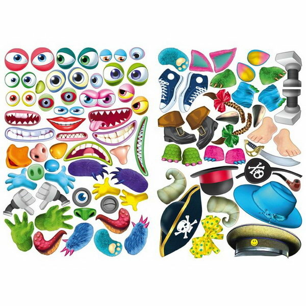 Используя наклейки, создай 8 уникальных чудиков.