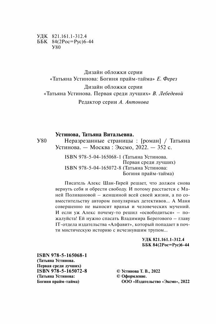 Книга: Неразрезанные страницы (Устинова Татьяна Витальевна); ООО "Издательство "Эксмо", 2022