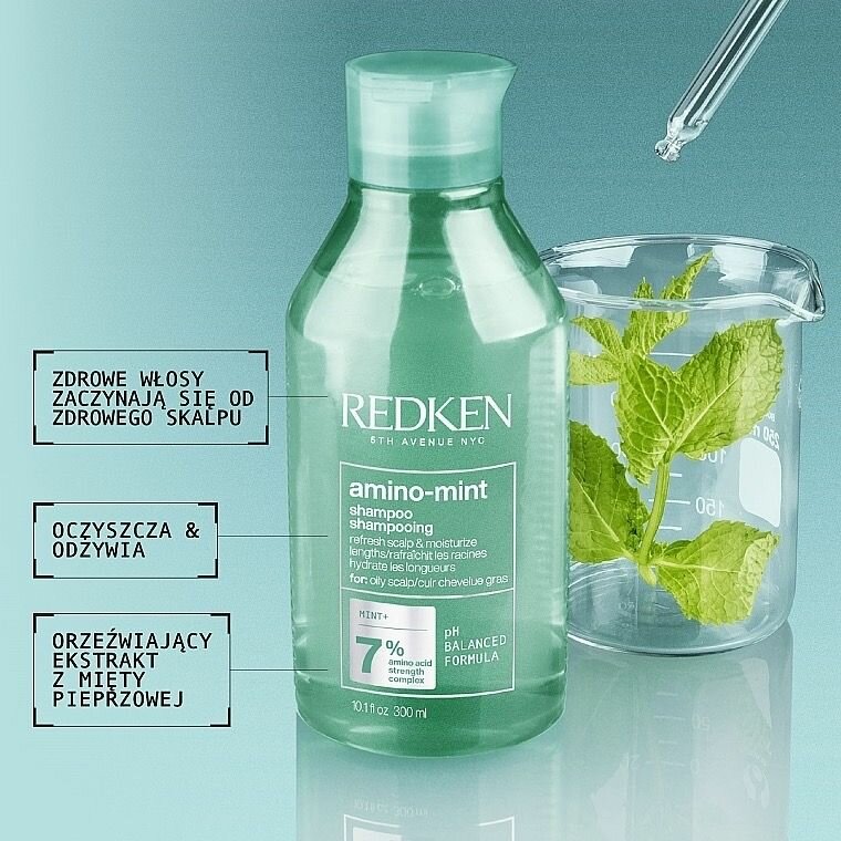 Шампунь Amino Mint от Redken мягко очищает волосы и кожу головы, оставляет легкое ощущение свежести благодаря освежающей мяте, успокаивает раздражение.Это профессиональное решение для волос, жирных на корнях и сухих на кончиках. Идеальный баланс по всей длине.