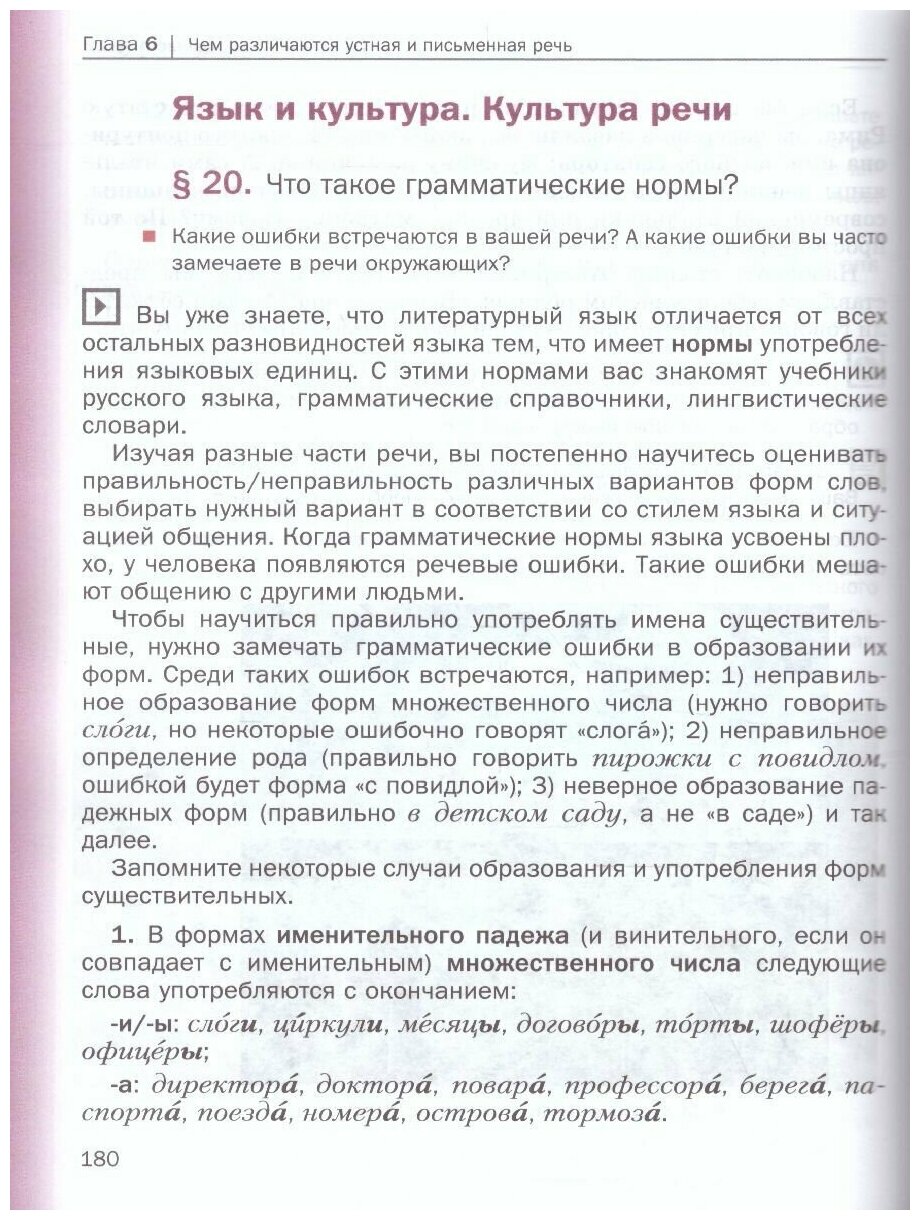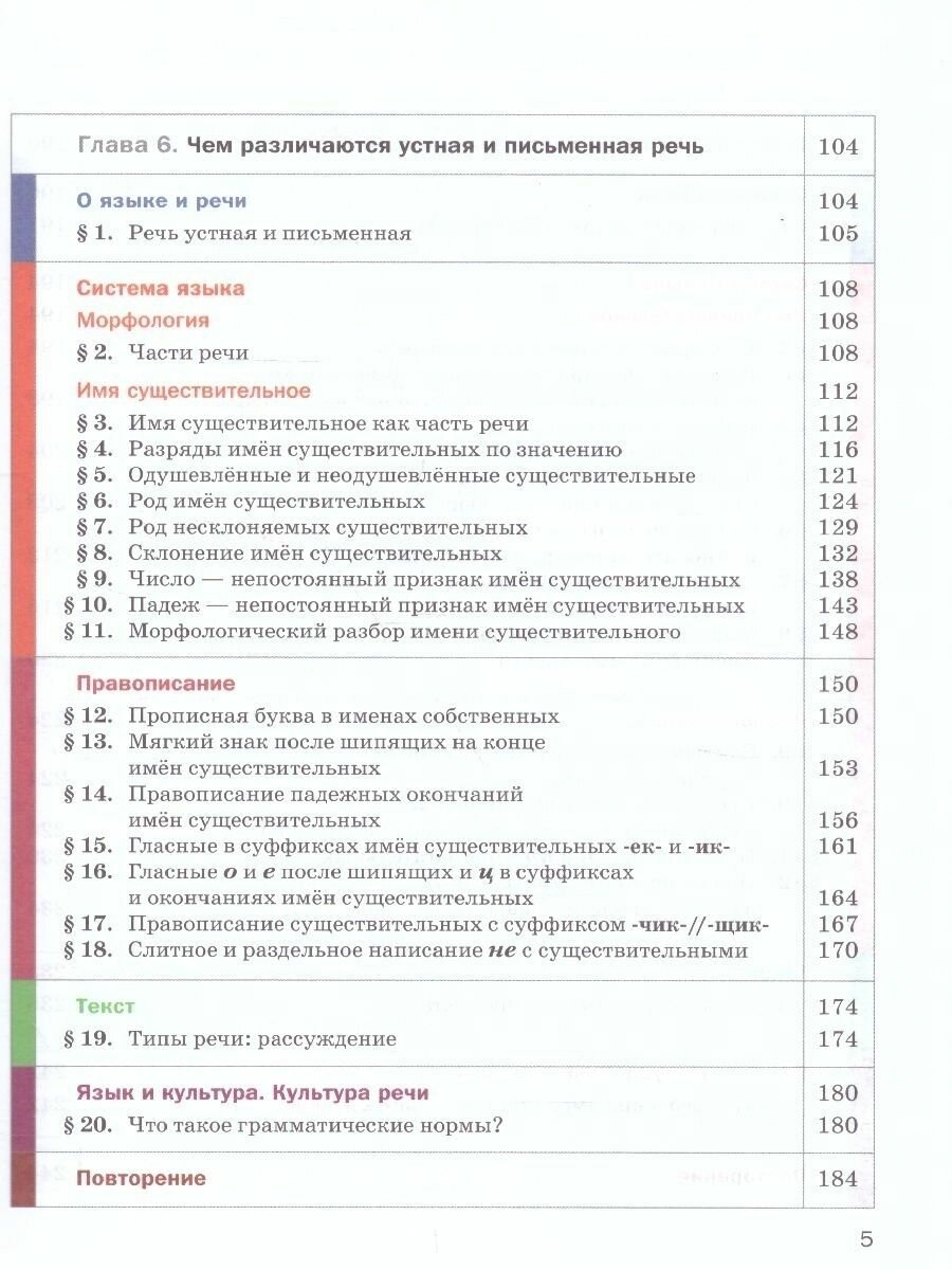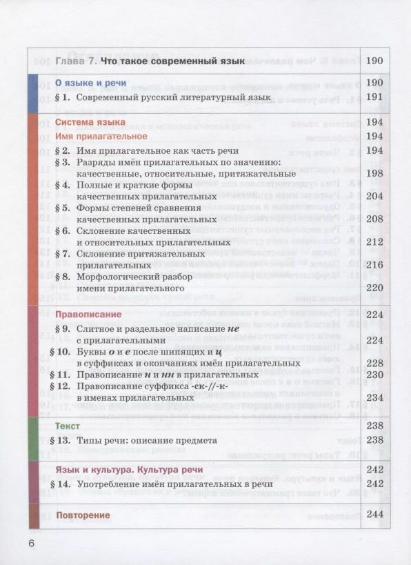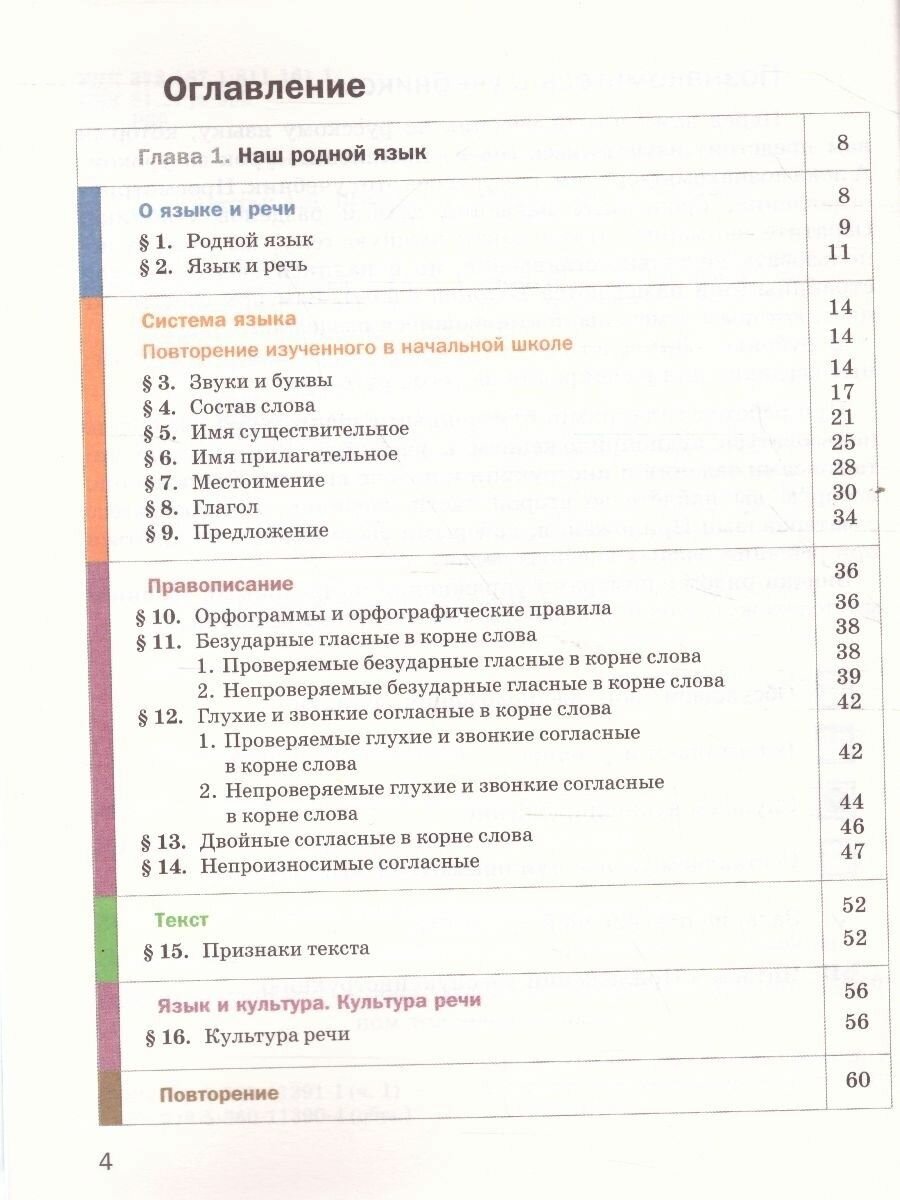 Учебник строится по модульному принципу: каждая из восьми глав включает шесть повторяющихся разделов: "О языке и речи", "Система языка", "Правописание", "Текст", "Язык и культура. Культура речи" и "Повторение".