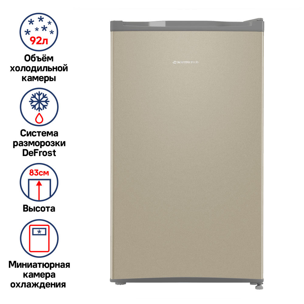Помимо просторной холодильной камеры, холодильник MAUNFELD обладает и морозильной камерой объемом 7 литров. Это позволит вам хранить замороженные продукты в удобном для вас расположении сверху.