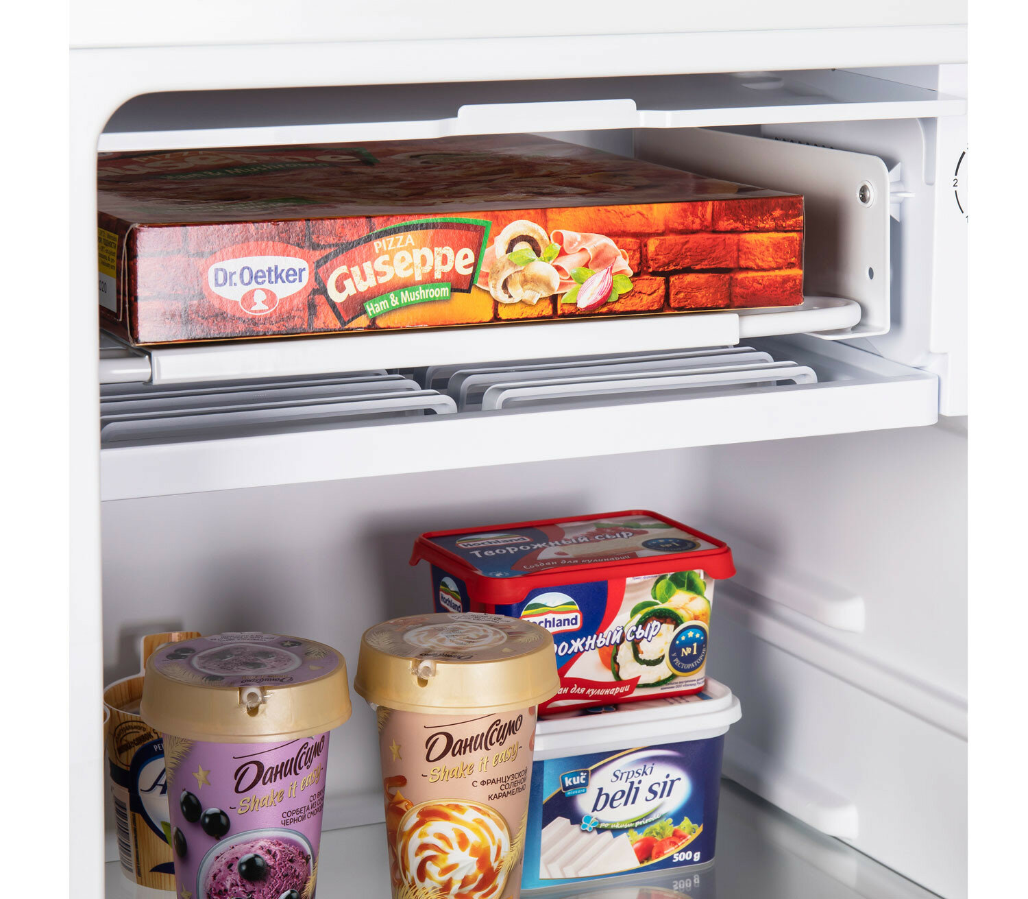 Отдельная морозильная камера сверху: это позволяет быстро и легко достать замороженные продукты, не открывая всего холодильника.