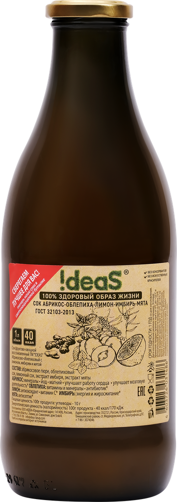 Сок !DEAS Абрикос-Облепиха-Лимон-Имбирь-Мята 1л