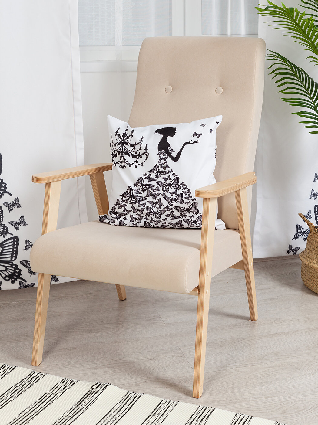 Яркие и контрастные, или наоборот, подчеркнуто строгие диванные подушки создадут нужную атмосферу и подчеркнут стиль и уют вашего гостеприимного дома. Наволочка "Платье из бабочек" на молнии пошита из ткани "Оксфорд", она плотная и хорошо держит форму, рисунок получается яркий и четкий.
