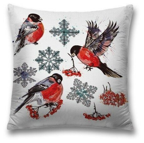 Модель: Наволочка декоративная на молнии Снегири зимой 45x45 см