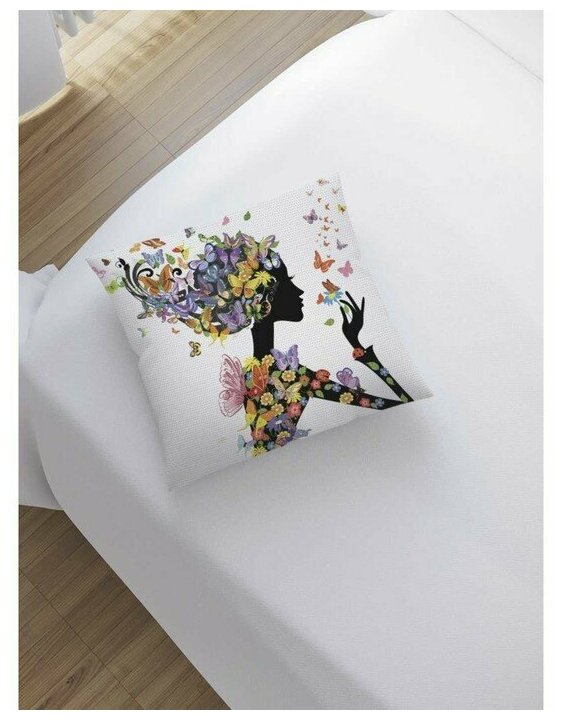 Декоративная наволочка JOYARTY Наволочка декоративная на молнии Цветочная девушка в бабочках 45x45 см (размер: 45 х 45 см)