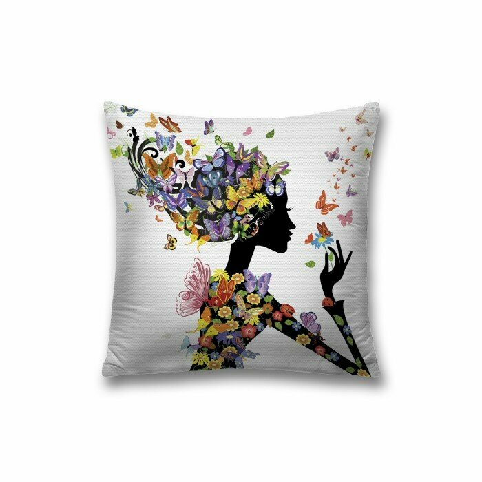 Модель: Наволочка декоративная на молнии Цветочная девушка в бабочках 45x45 см
