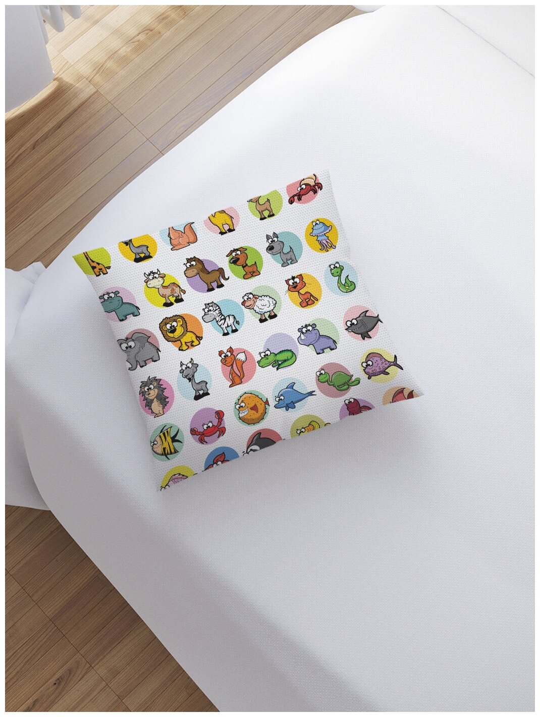 Подходит для подушек размером 45х45 см, и отлично переносит стирку. Рисунок нанесен на изделие с двух сторон, а молния расположена таким образом, чтобы не мешать отдыху и не бросаться в глаза.
