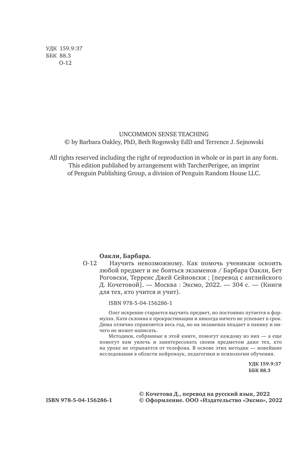 Научить невозможному. Как помочь ученикам освоить любой предмет и не бояться экзаменов (Оакли Барбара, Терренс Сейновски, Бет Роговски); Эксмо, 2022