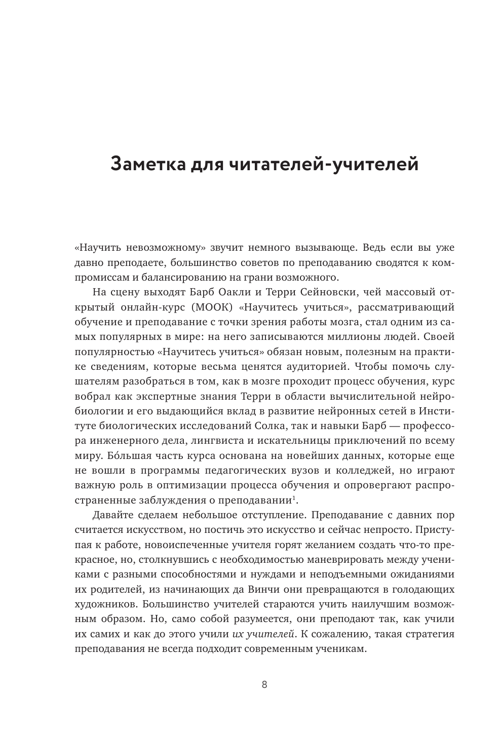 Авторы этой книги объединили последние исследования в области педагогики, психологии обучения и нейронаук. На стыке этих дисциплин они разработали методики, эффективность которых доказал их курс "Научись учиться". Сегодня его аудитория на Coursera превышает 3 млн человек.