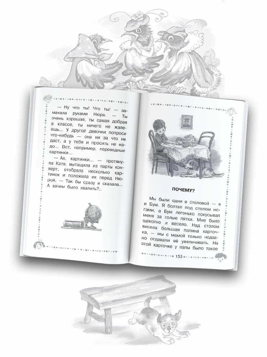Очень крупный шрифт, каждая страница в рамке, черно-белые иллюстрации разных художников.