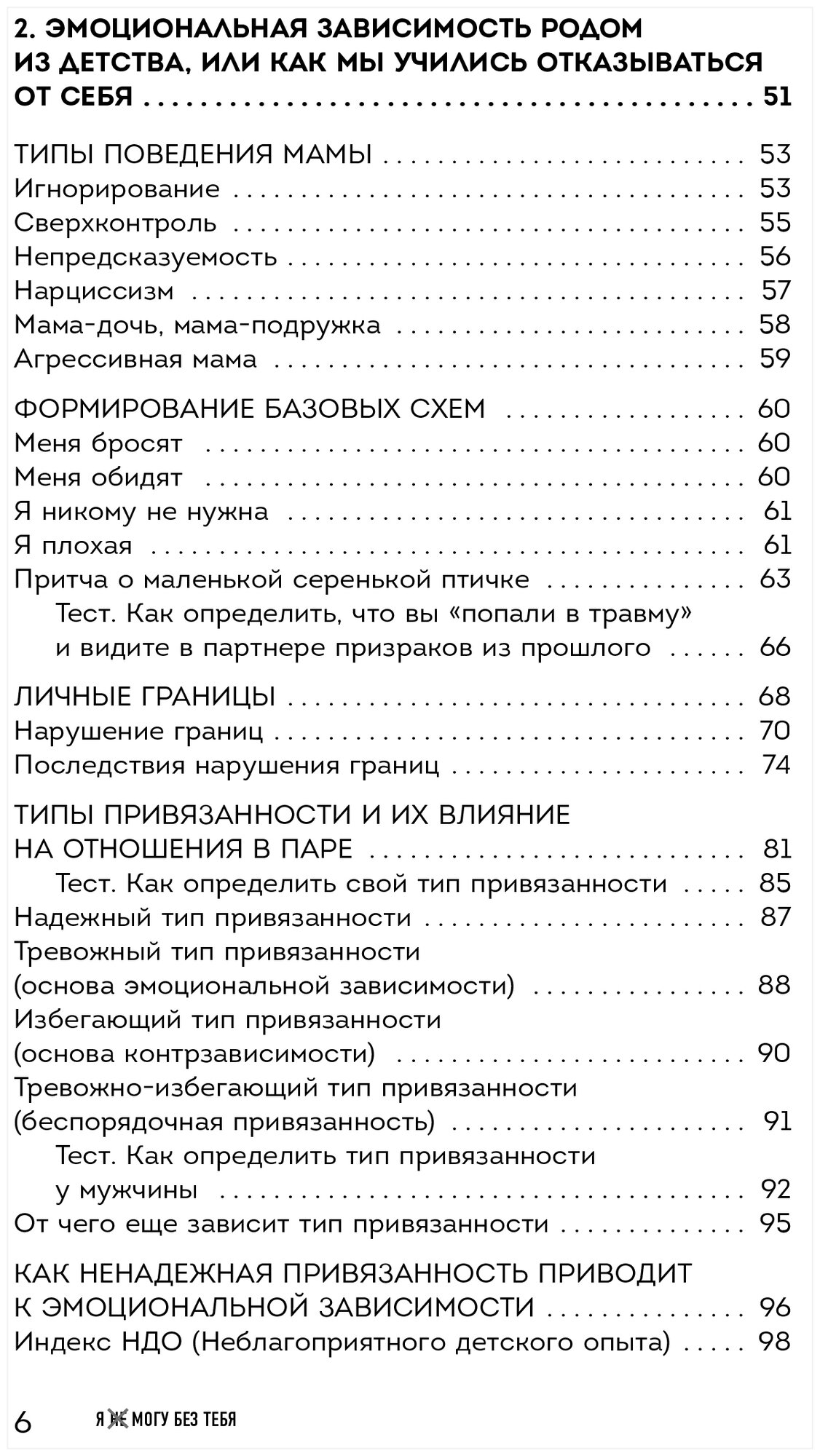 Интересная и полезная книжка. Автор помогает расставить по своим местам, разложить по полочкам в своей голове, что такое любовь, что такое любовная зависимость, как отличить одно от другого. Как стать самодостаточным и самостоятельным человеком, чтоб не было трагедий, зависимостей,страха потерять партнера и вот этого надрыва \"Я не могу без тебя\".Автор говорит, как научиться любить себя и давать себе нужные эмоции, принятие, не цепляться за партнера.