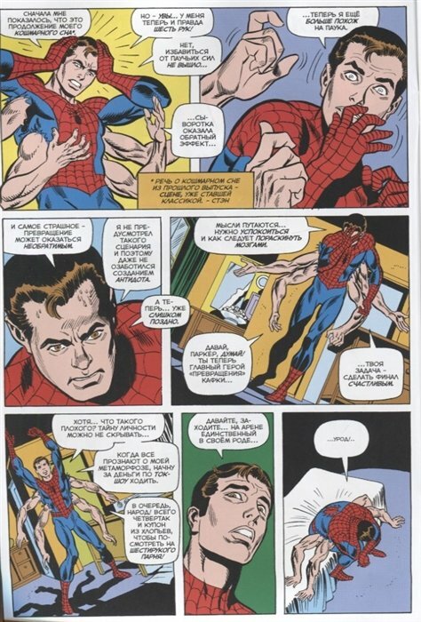 Здесь хороший рисунок, не такой изощрённый, как в более поздних выпусках про Человека-паука, но на достойном уровне. Рассказ интересный, без лишних сюжетных линий. Повторюсь, замечательный комикс: захватывающий, красивый и со смыслом. -