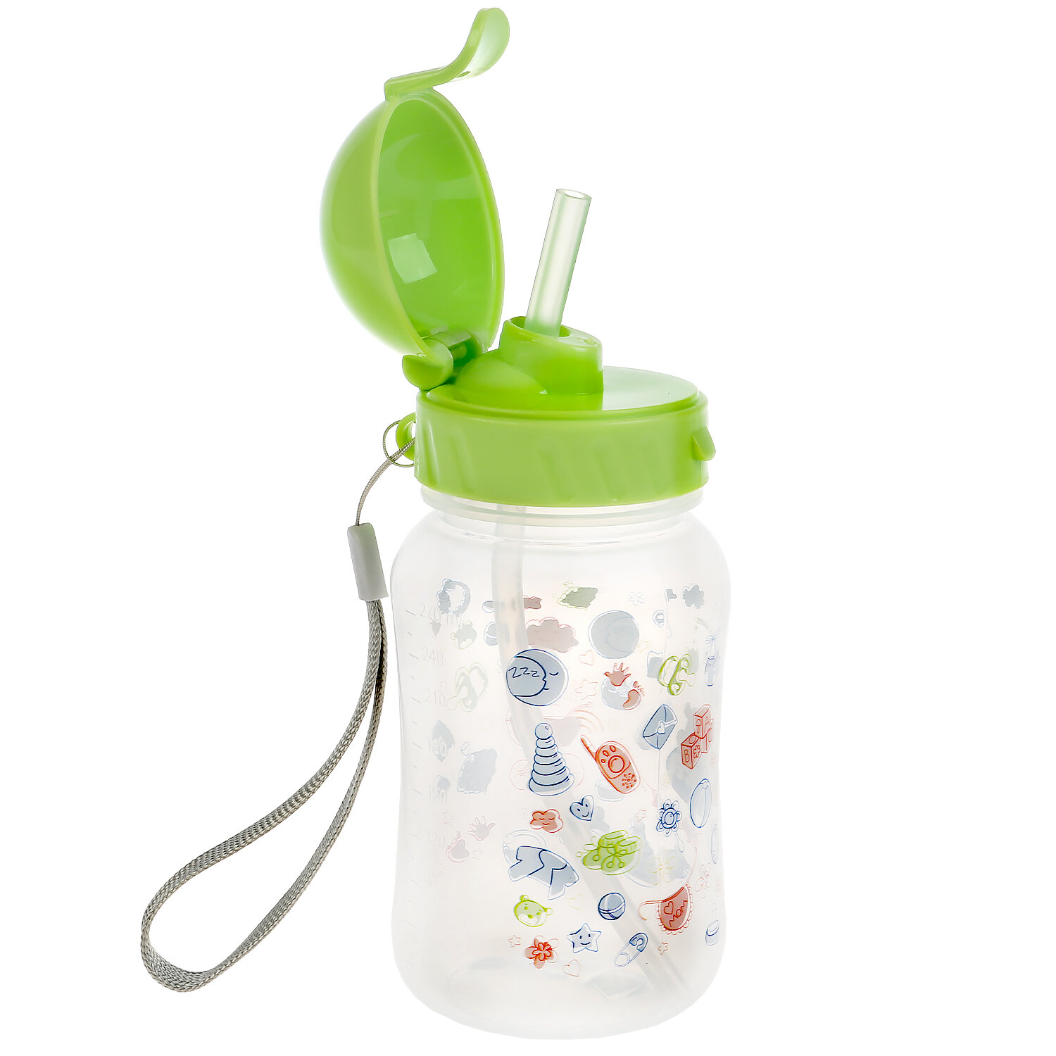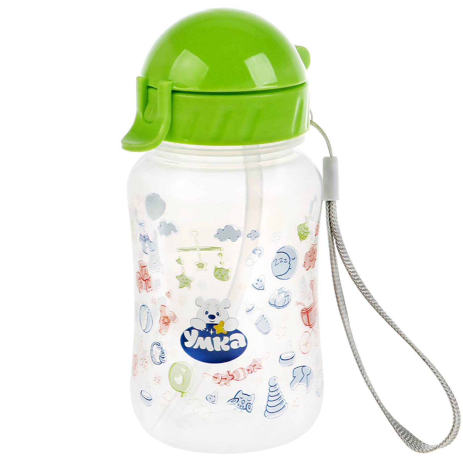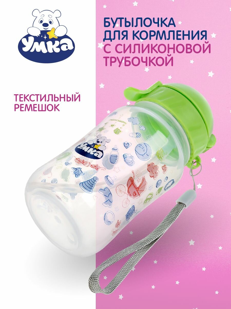 Бутылочка оснащена мерной шкалой на корпусе для удобства дозирования смеси. Силиконовая трубочка безопасна для нежных дёсен и зубов малыша, защищая их от повреждений. Благодаря специальному ремешку, бутылочку удобно брать с собой. Заботьтесь о своём малыше вместе с ТМ УМка.