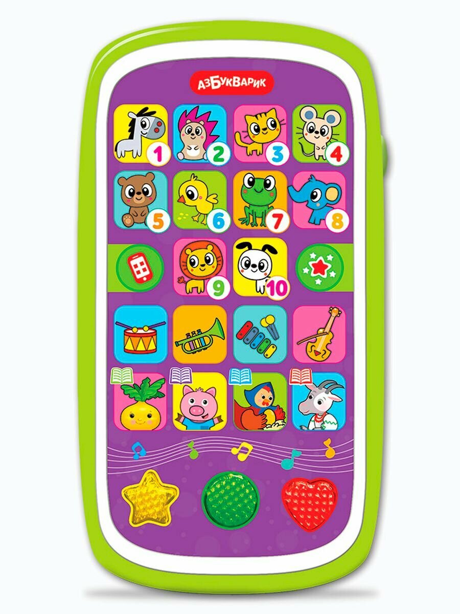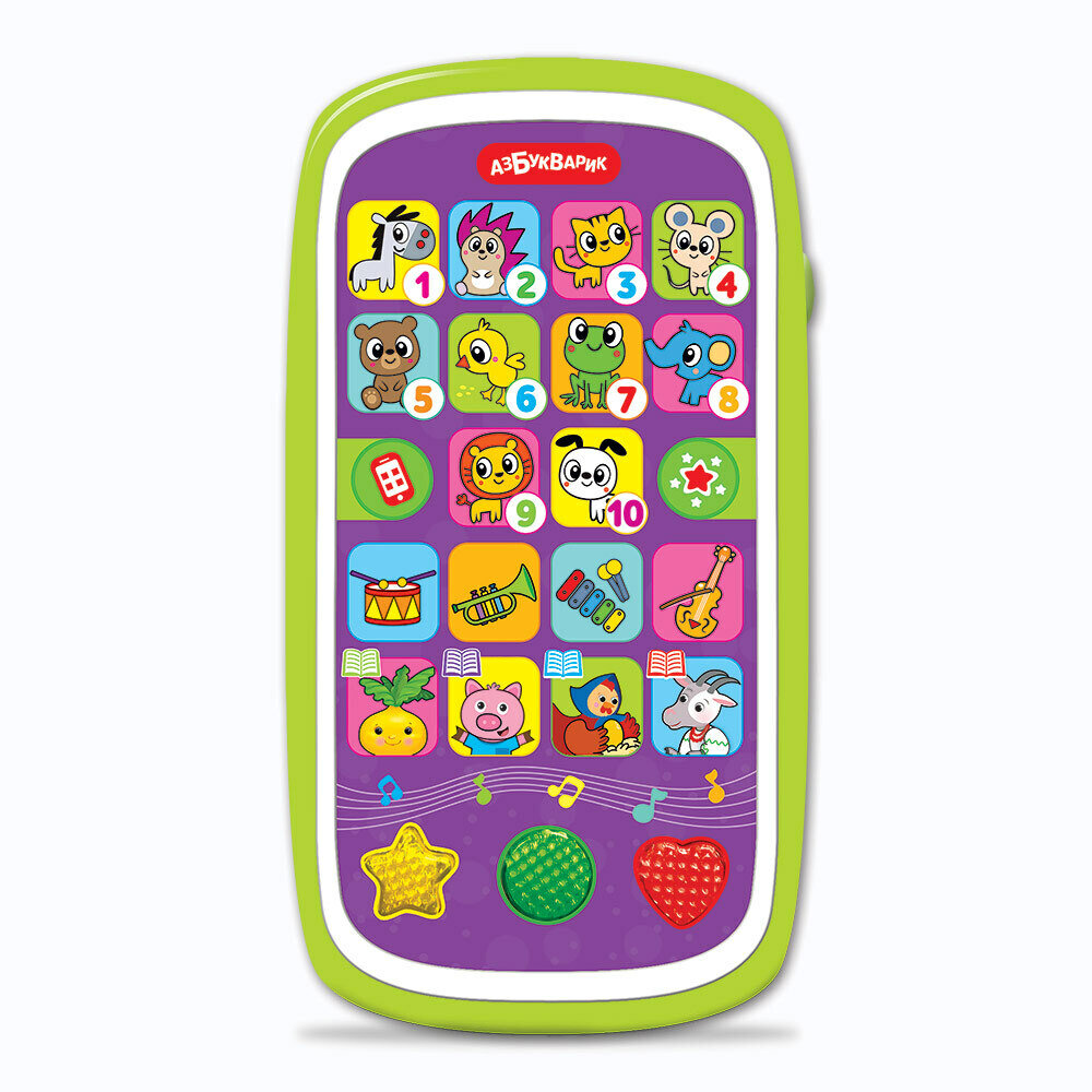 Азбукварик . Ваш малыш любит песенки, сказки и веселые игры? Тогда этот мультиплеер – для него. В нем собрано 4 сказки («Репка», «Три поросёнка», «Курочка Ряба», «Волк и семеро козлят»), 50 песенок, мелодий и звуков («Ждёт лошадка малышей», «Жил да был весёлый ёжик», «Котёнок-веселушка», «Мышка-малышка», «Бурый мишка», «Озорной цыплёнок», «Что на завтрак у лягушки?», «Моет слон живот и уши», «Грозный лев», «Забавный щенок», «Лесная считалочка», «Формы всякие вокруг», «Весёлые противоположности» и др.), 45 вопросов и загадок. Малыш может выбрать один из пяти режимов: «Песенки», «Телефончик», «Загадайка», «Умняшка», «Волшебное пианино». С такой многофункциональной игрушкой ребенок будет занят надолго! А разноцветные огоньки на фигурных кнопочках поднимут настроение!