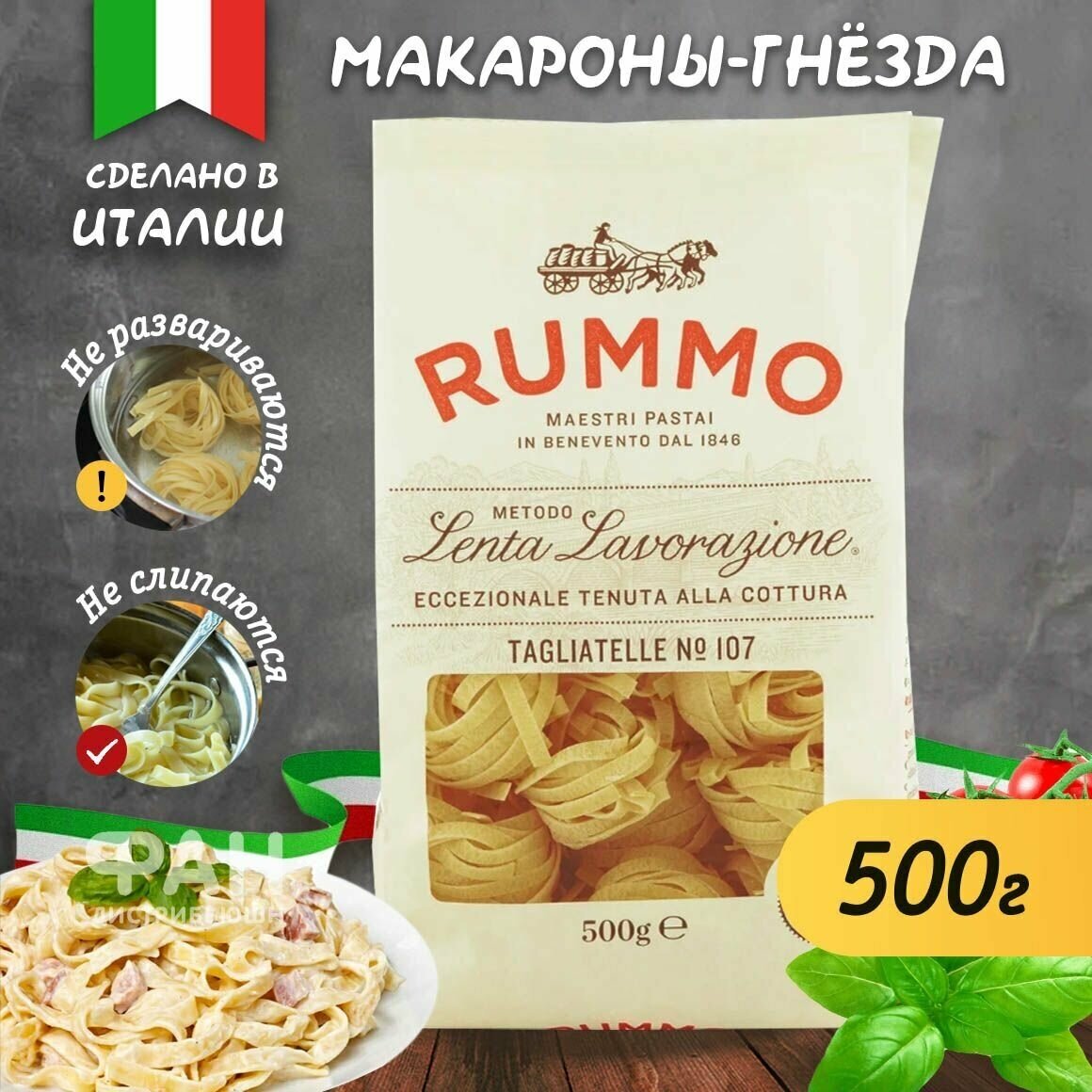 Сервис сравнения цен СкидкаГИД предлагает сравнить цены на товар «Паста макароны из твердых сортов пшеницы Rummo Гнезда TAGLIATELLE ниди N107 Италия 500гр Гнёзда Тальятелле №107 500 г (размер: средние)»