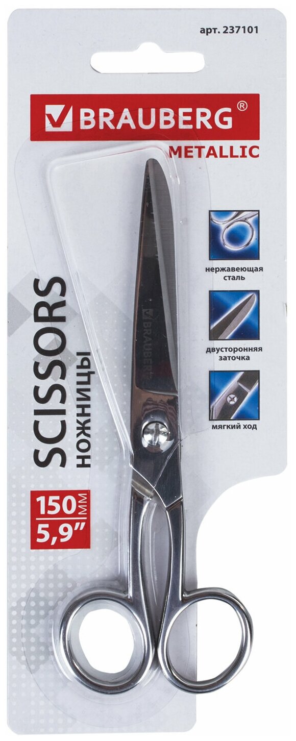 На сегодняшний день товар «Ножницы хозяйственные Brauberg Ножницы Professional цельнометаллические 150 мм 237101» можно купить с кешбеком в 1 магазине: Яндекс.Маркет