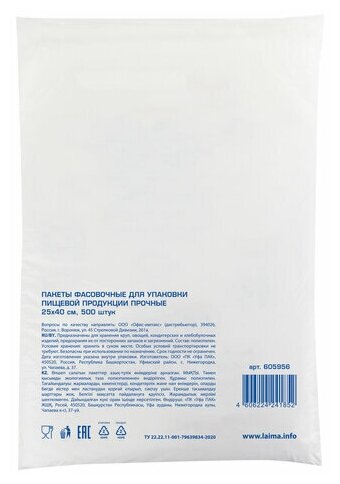 Модель: Пакеты фасовочные 25х40 см 500 шт. 605956
