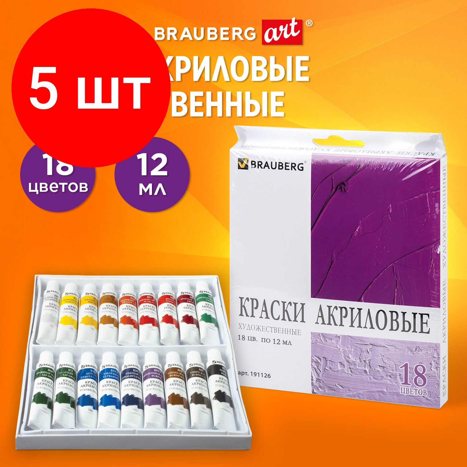 Краски акриловые 18 шт./18 цветов 12 мл туба матовый картонная коробка BRAUBERG DEBUT (191126) Краски акриловые художественные Art Debut набор 18 цветов по 12 мл 191126
