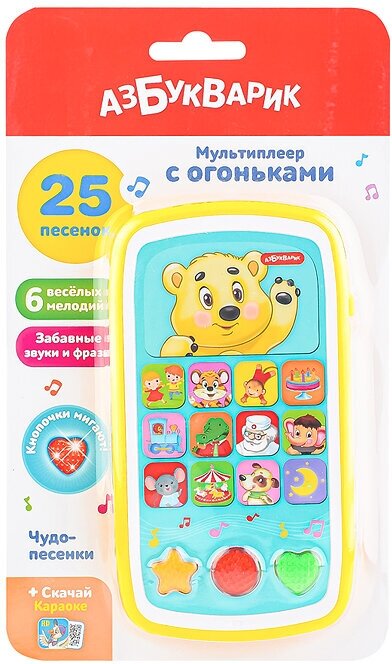 Ещё больше популярных детских песен – в мобильном приложении Азбукварик в книжке Караоке. Ищи QR-код для скачивания на упаковке.